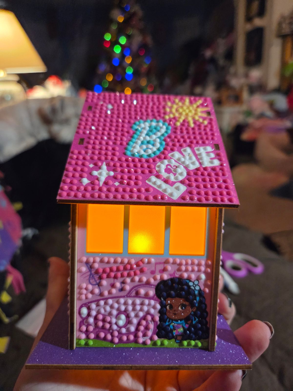Absolutely beautiful. Easy to do and easy to assemble. And it lights up. You’ll need a battery for the light. I ordered from Amazon. Was fun and fast.