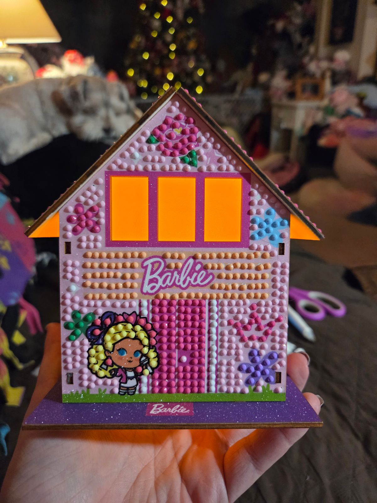 Watch the light dance on your walls with diamond art shimmer and Barbie® charm! Create your own mini-dreamhouse that lights up, bursting with pink and ready to add drama and delight.