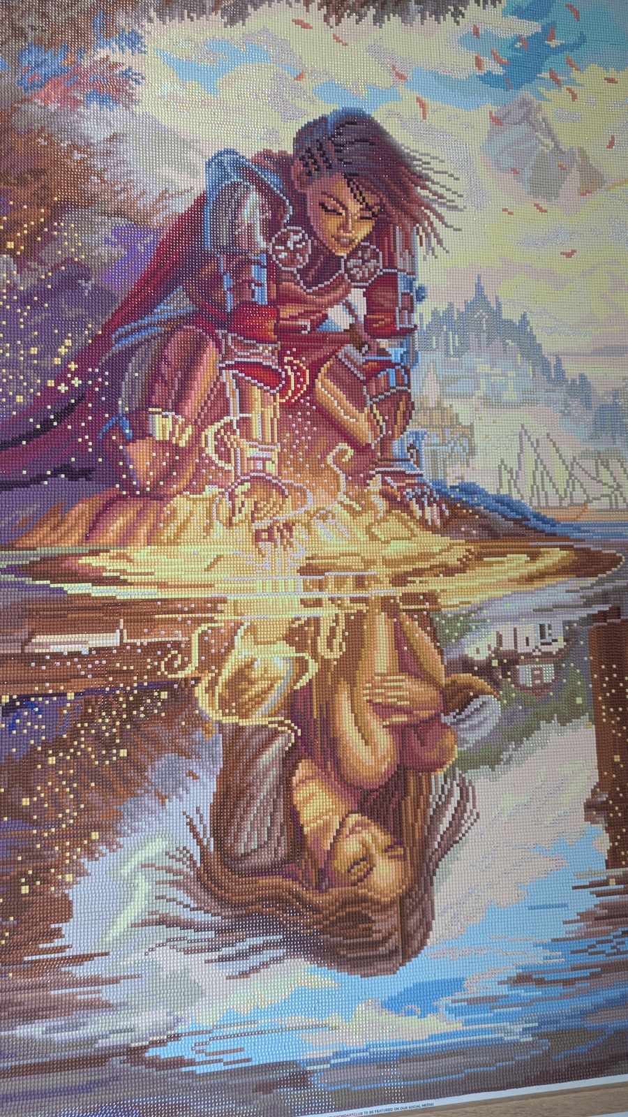 Es un lienzo que lo esperaba con muchas ganas porque representa a una saga de unos libros me está gustando mucho hacerlo estoy a la mitad me está encantando cuando lo acabe subiré el vídeo es precioso