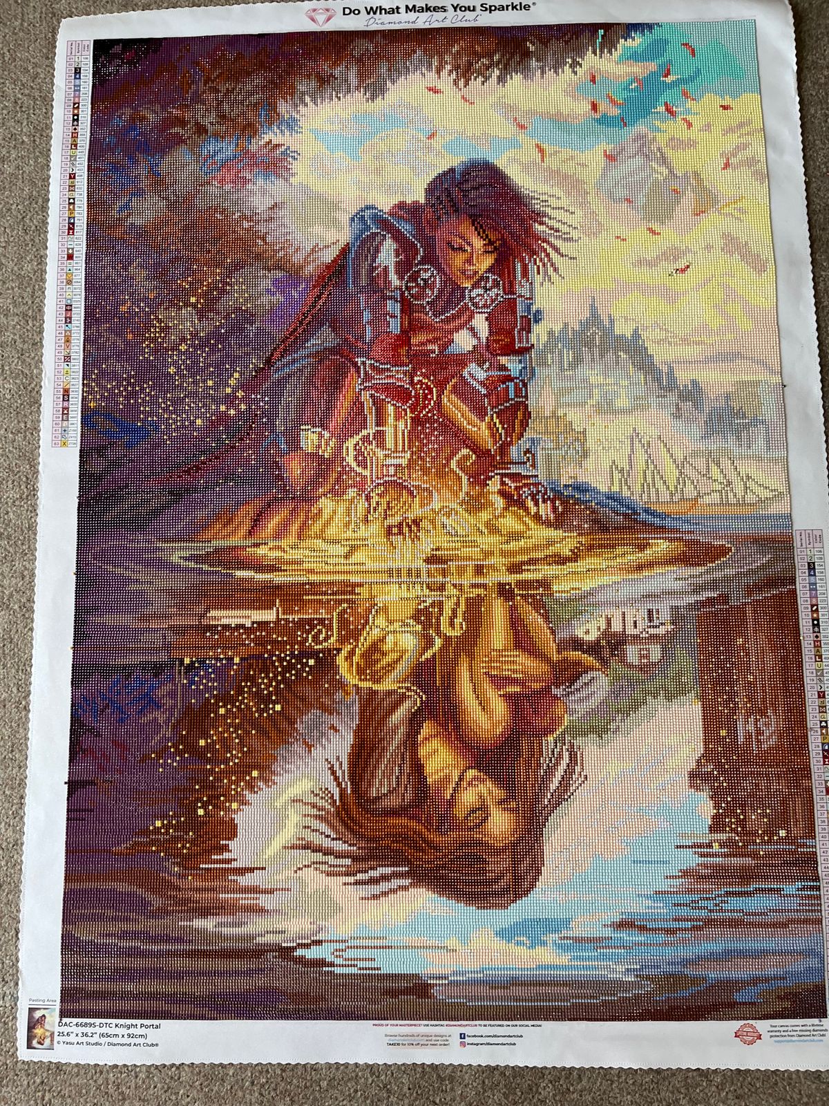 Absolutely loved doing this one from the background to the stunning centre of the knight and woman it’s such a powerful image. I enjoyed making it a little more own through using some enhancement drills. Definitely a strong message through this one have had lots of people remark on it and it’s not on the wall yet!