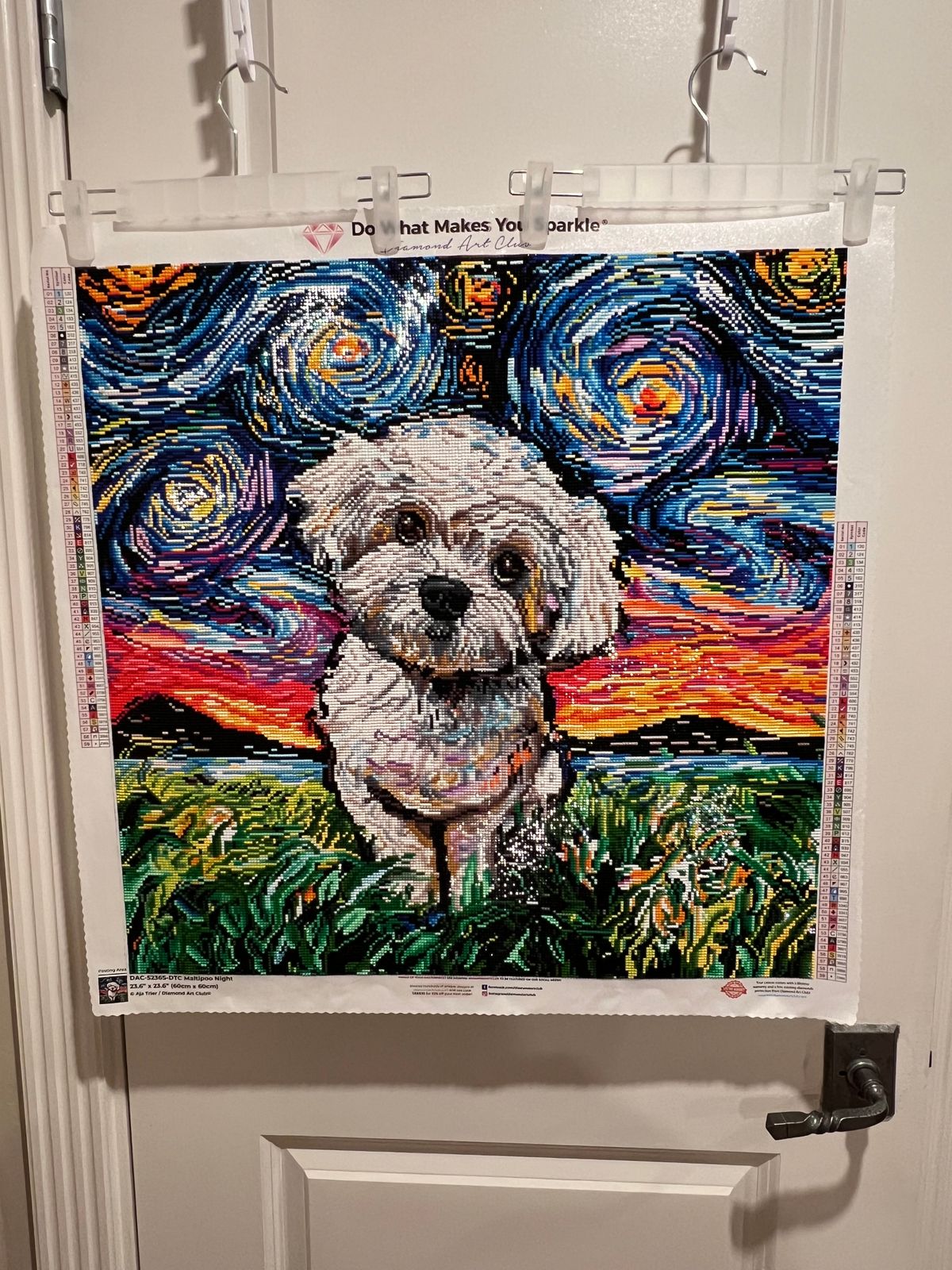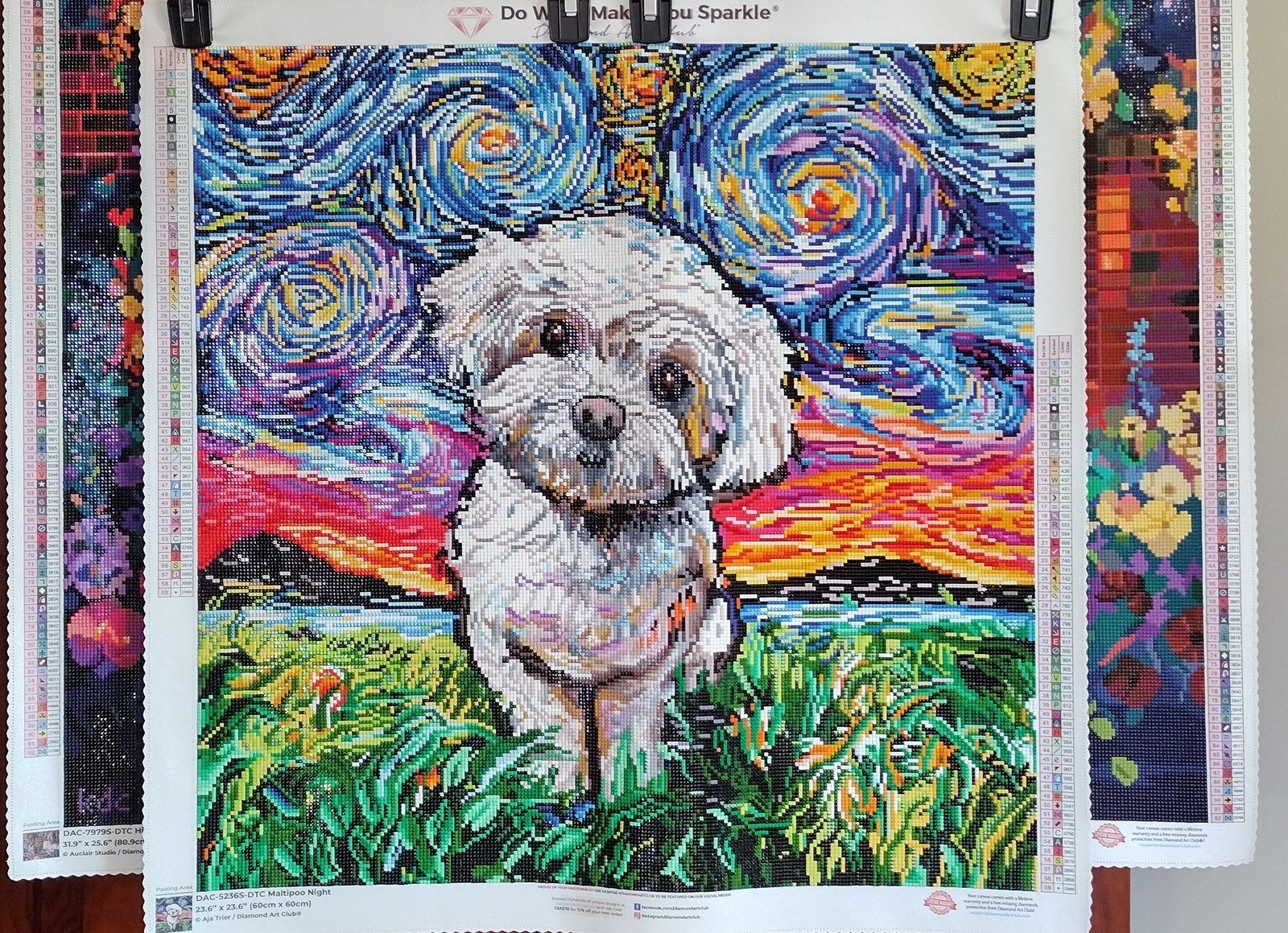 Diamond Painting Maltipoo Night 23.6" x 23.6" (60cm x 60cm) / Square with 59 Colors including 3 ABs and 1 Fairy Dust Diamonds / 57,600