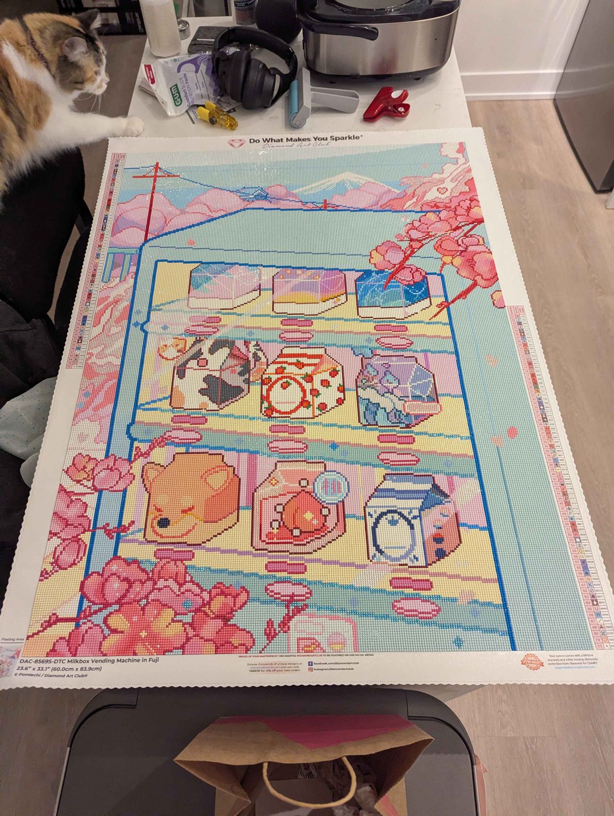 I love all things that incorporate Japan, this vending machine with the milkboxes with mt Fuji in the background was so fun to do even with all the color blocking. I'm not a big fan of a lot of clock blocking but the light blue fairy dust made up for it. I love the pastel colors and I hope I get a chance to do another diamond art painting like this in the future.