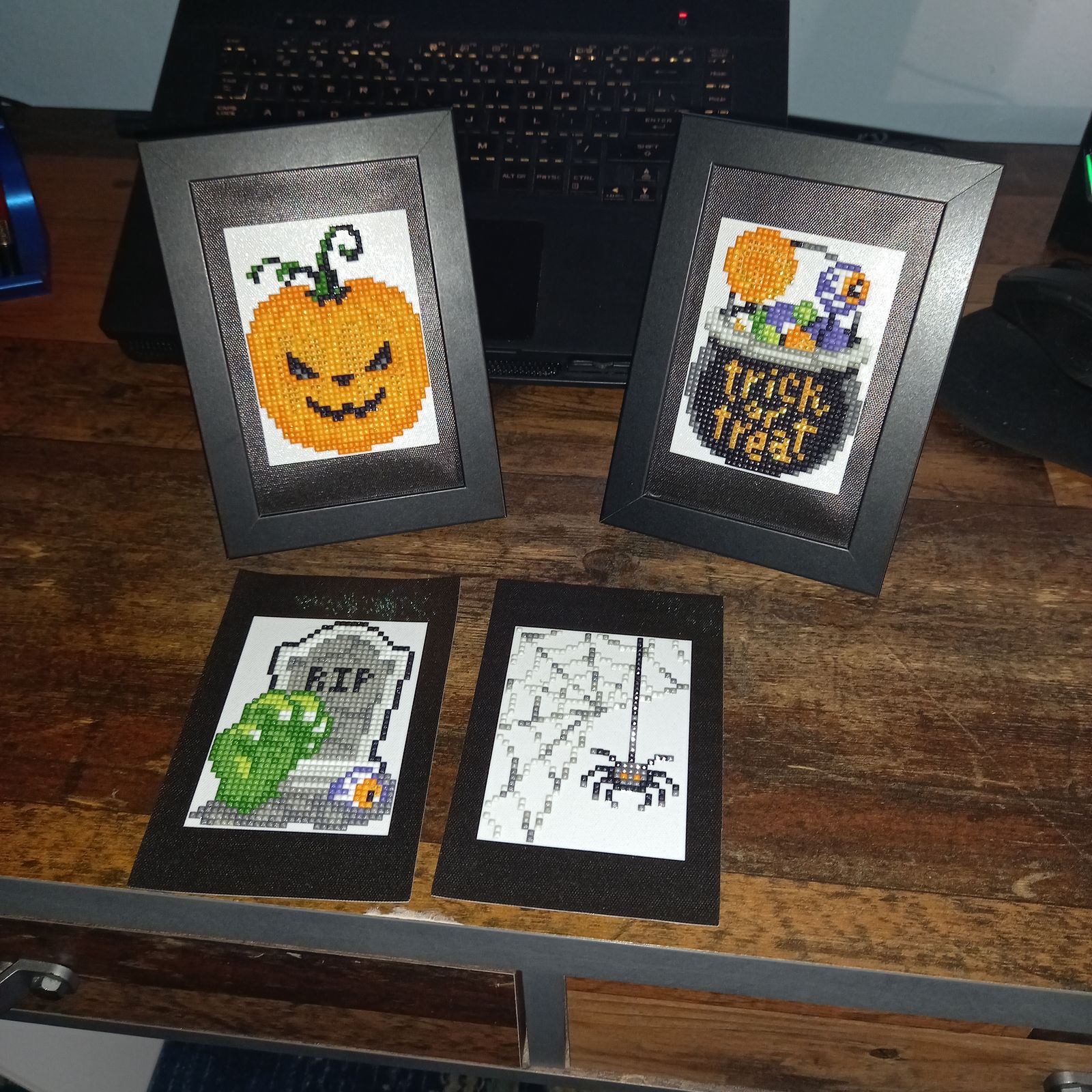 Great refresher after working on huge kits for so long. The mini dazzles are the perfect size to spare 30 minutes of your day to diamond paint if your super busy but still want to spend time on your favorite craft. This set took me 7 days to complete. Could have been quicker but I took my time and worked at my own pace for once :) . My favorite would have to be the pumpkin, it shines and sparkles in the light and it's so pretty!