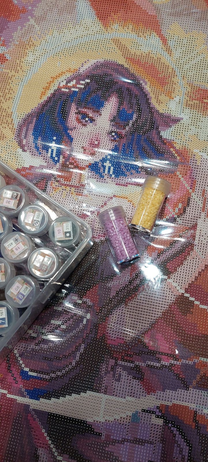 Amo todos los diseños de este artista, lo nitido de la imagen es excelente y la calidad del lienzo y los diamantes es de otro nivel. Amo todos los diseños de DAC.