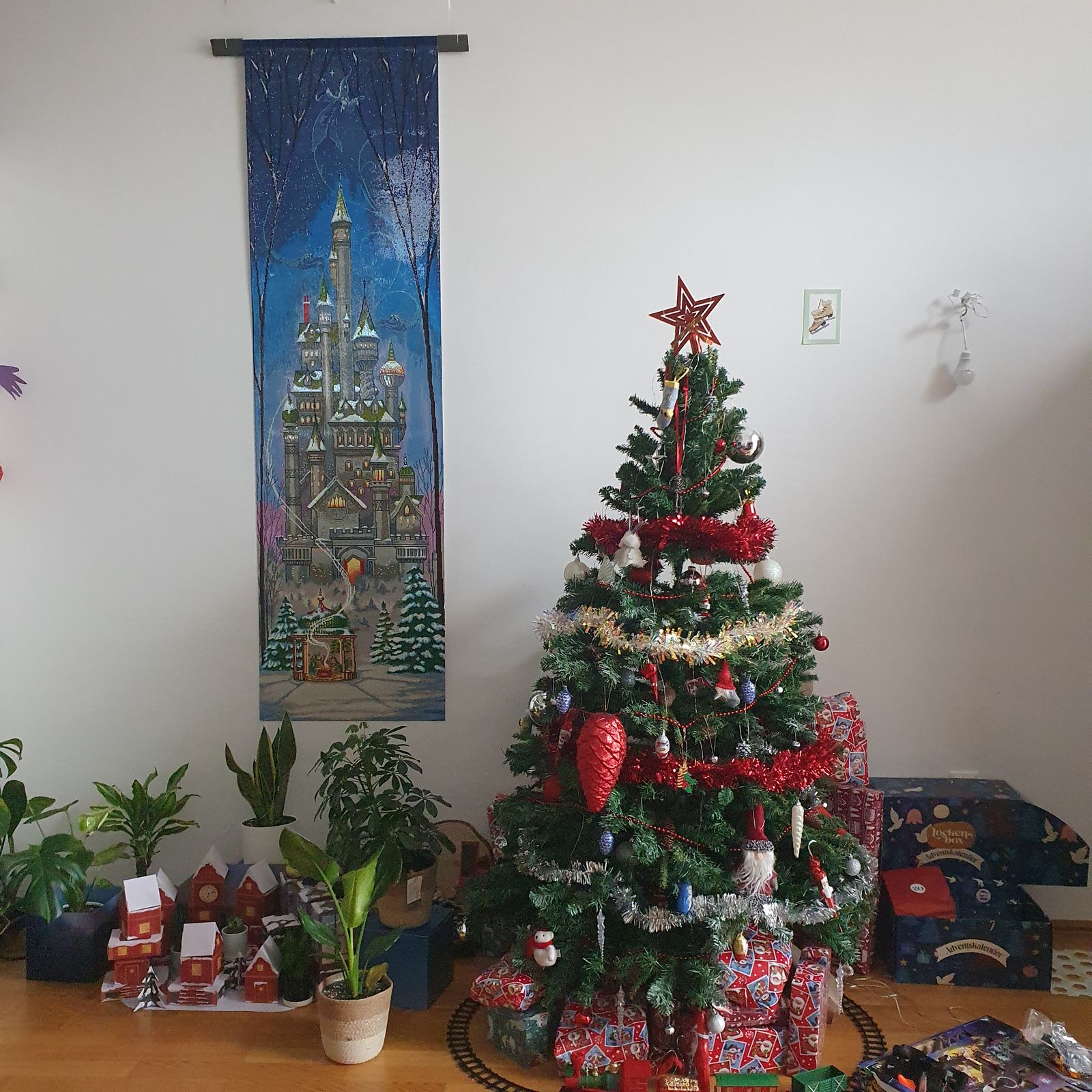 This was my second finish. It's huge but so much fun to do! Now that it's hanging next to the Christmas tree it's showing all of it's sparkling beauty!