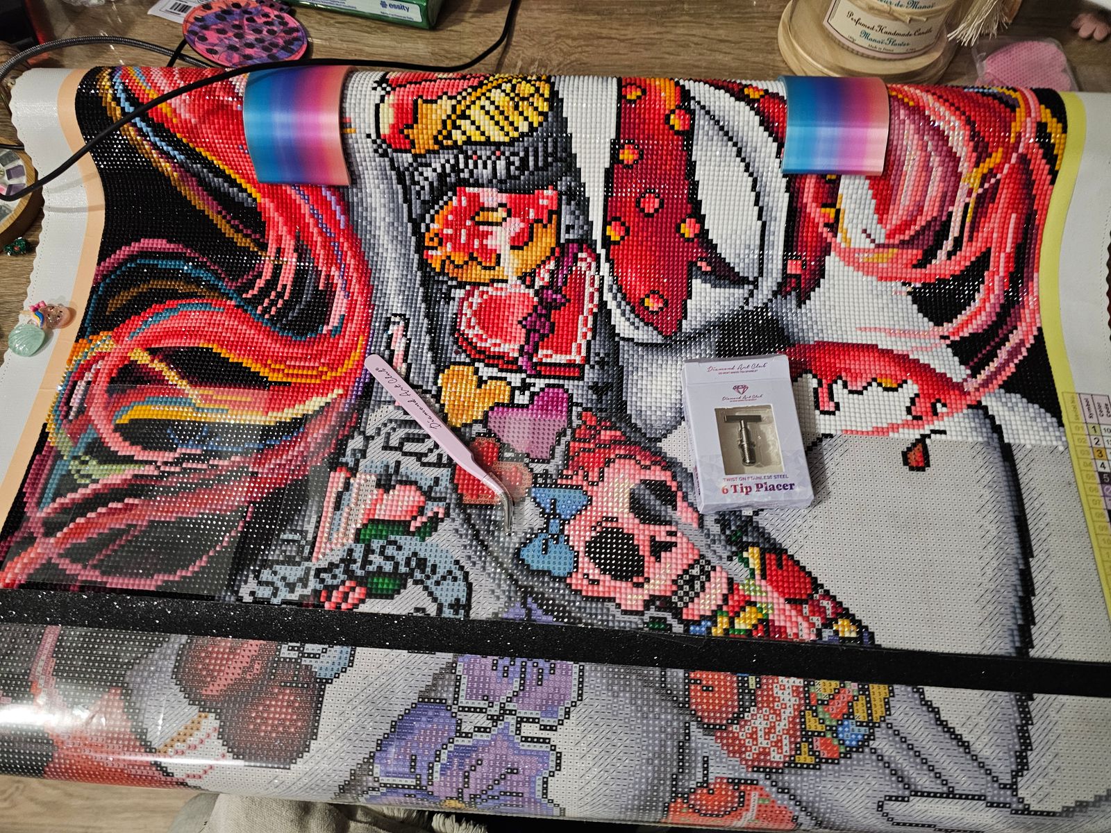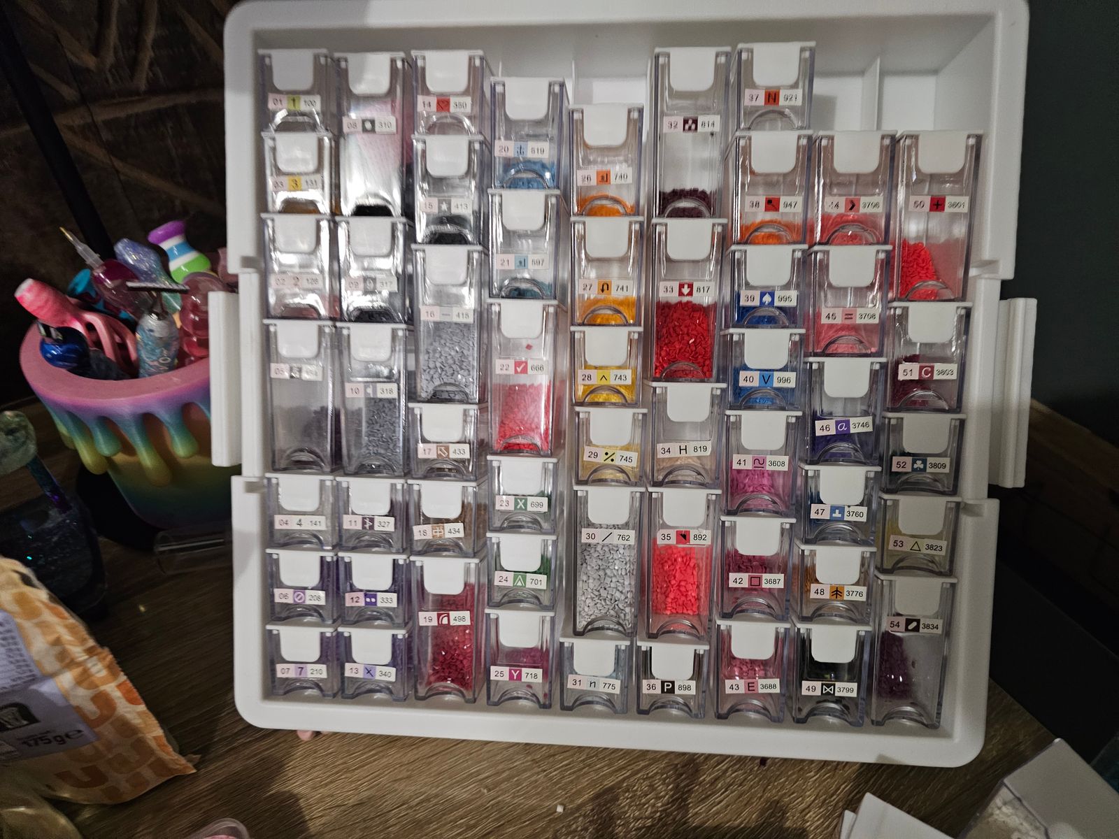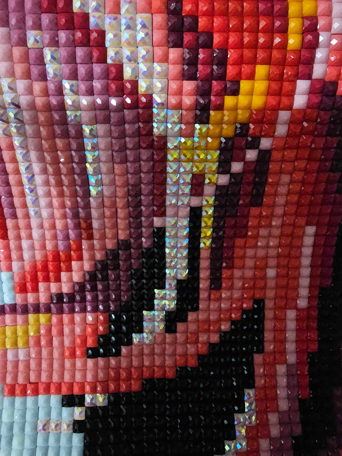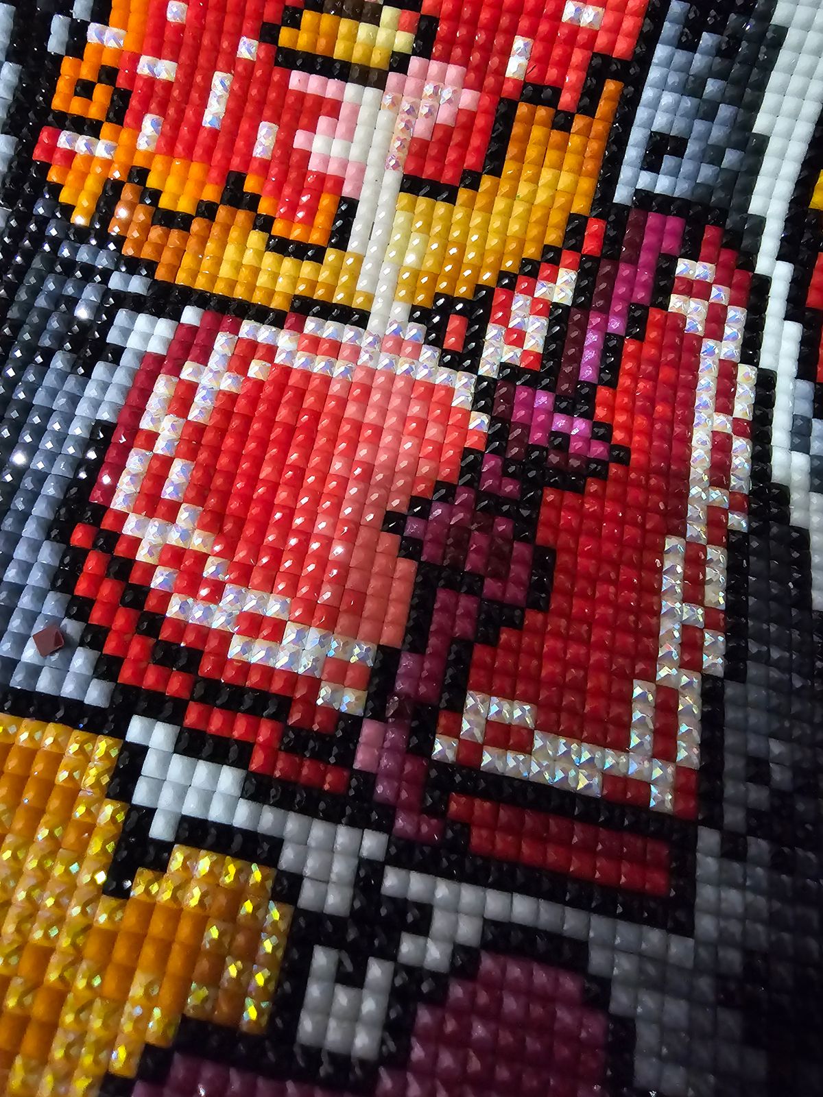 I've loved doing this piece from beginning to end. There wasn't a lot of color blocking, which was nice. It has a lot of confetti bc it's so colorful and bright,which I LOVE!! The only thing I would change is more special drills lol, you can never have to much sparkle💖💖 Another great one Diamond Art Club
