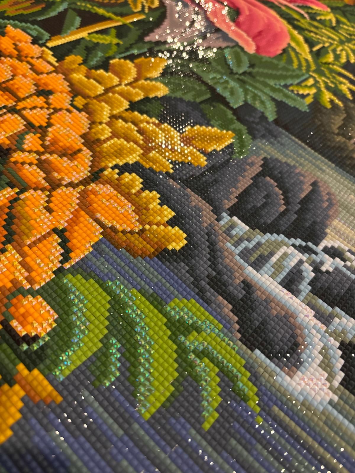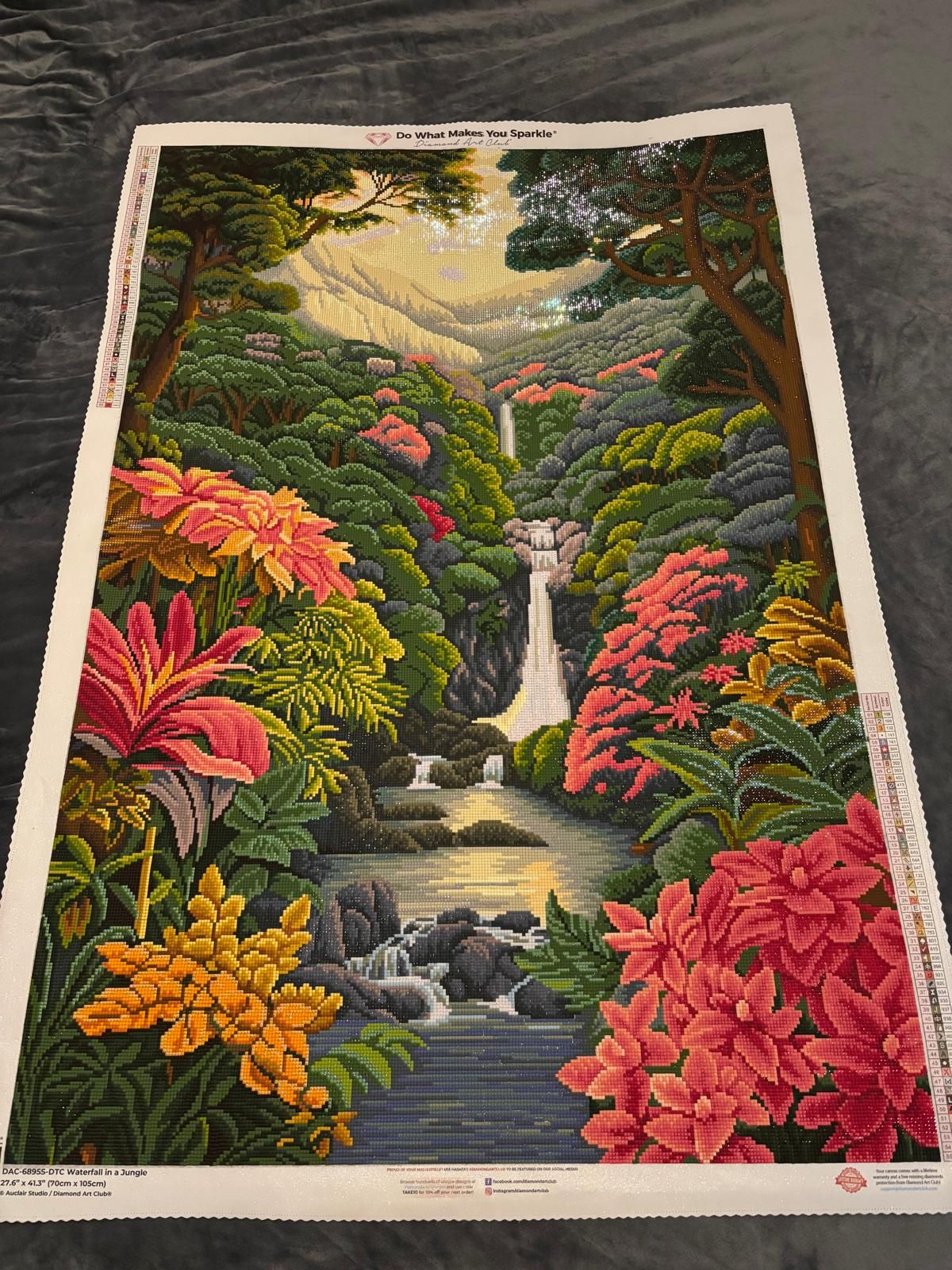 This was a big, no, huge commitment for a first timer! However when I jump in a hobby or craft I go all in! I am throughly enjoying this canvas! I am approaching the quarter mark of the canvas! I am a week and two days in! The colors of the diamonds are so vivid and I am finding very minimal damaged diamonds.