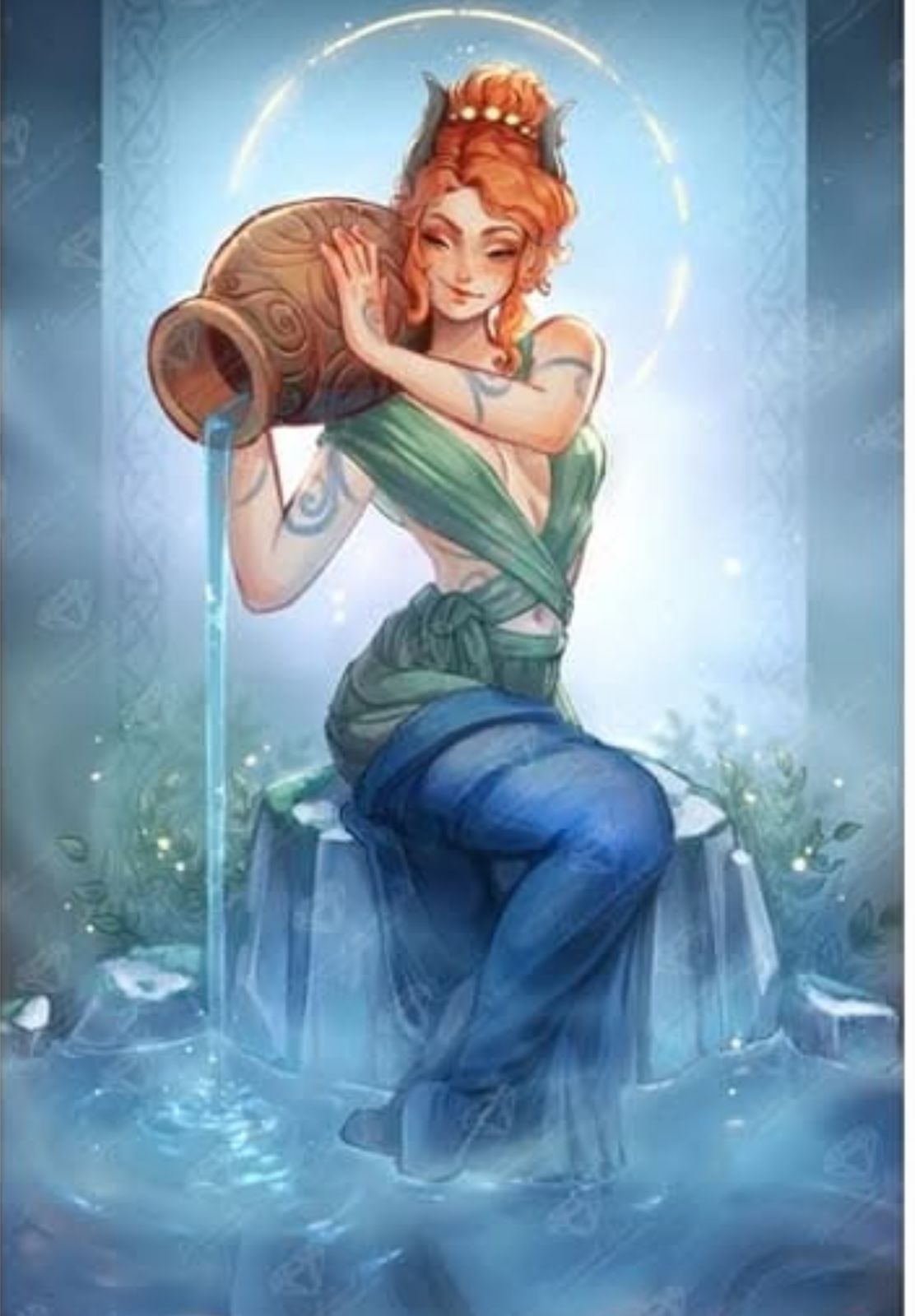 Empty your vessel into the sparkling reflecting pools. A sly smile suggests there's more to you than meets the eye.