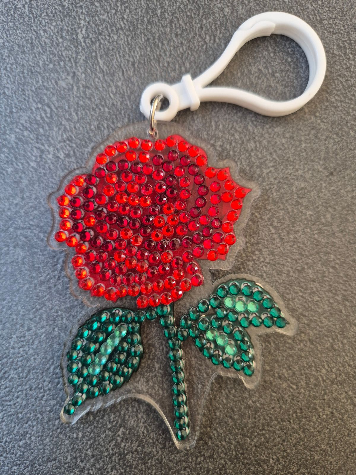 Show off a little sparkle and sass with this glam rose accessory. Create it, clip it to your tote, keys, or backpack and let your style bloom on the go.