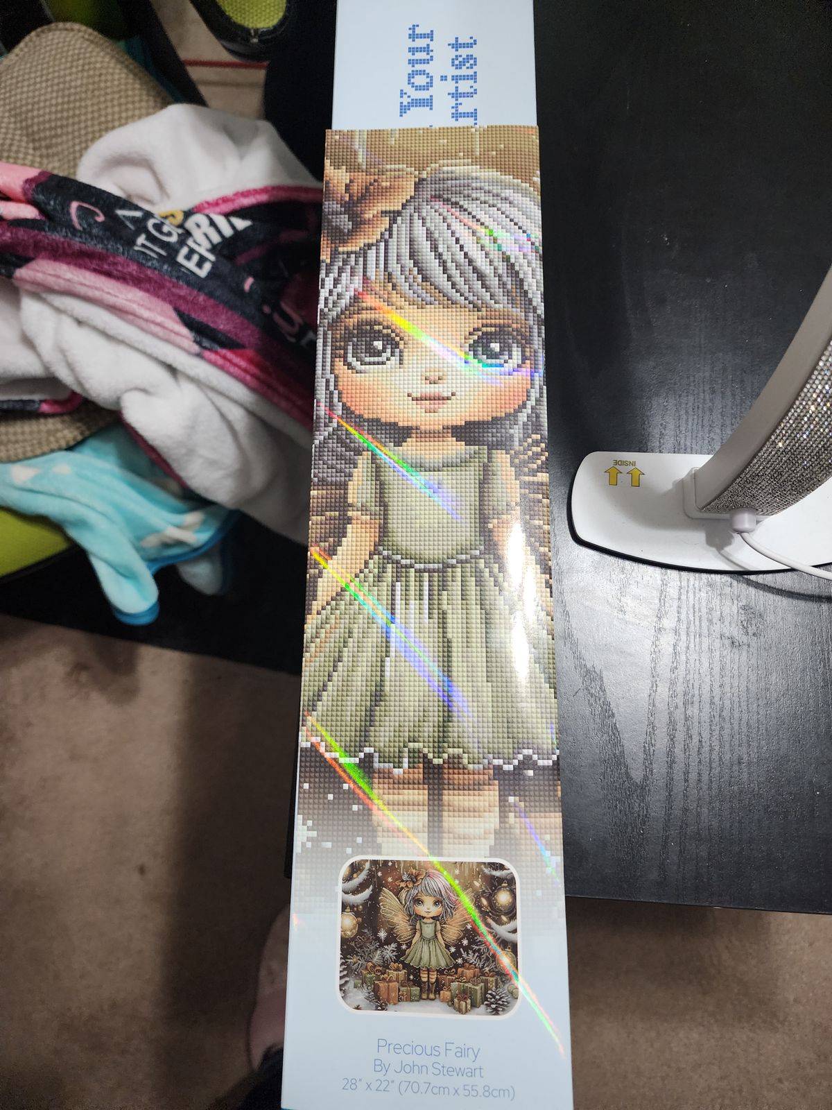 This adorable sparkly Fairy was a treat to work on. The colors match my Christmas Decor and I have the perfect spot for it and it will complete the look. As soon as I saw this, I was like that is it. That is exactly what I need. I am so happy with how it turned out and looks framed. I love it.