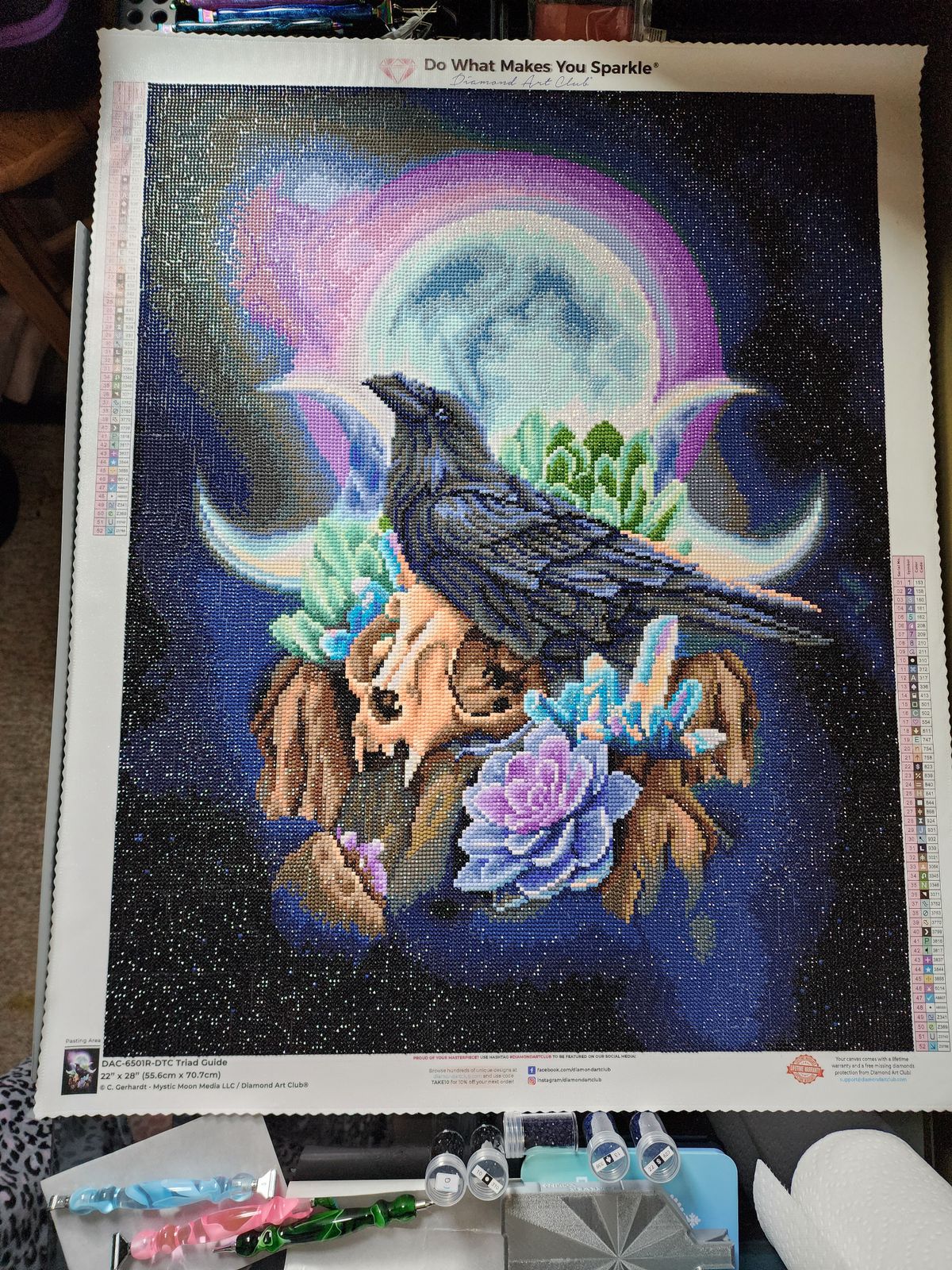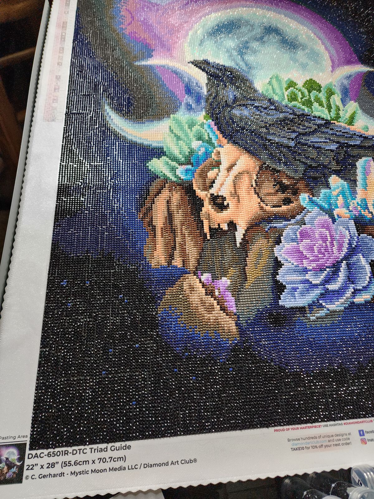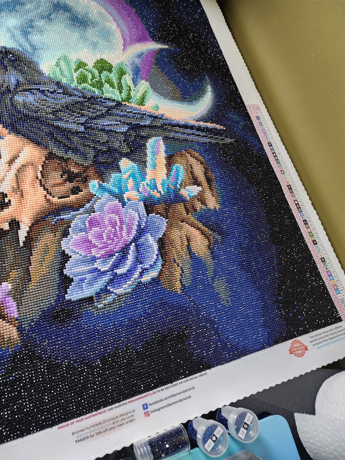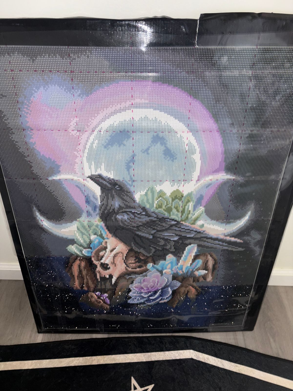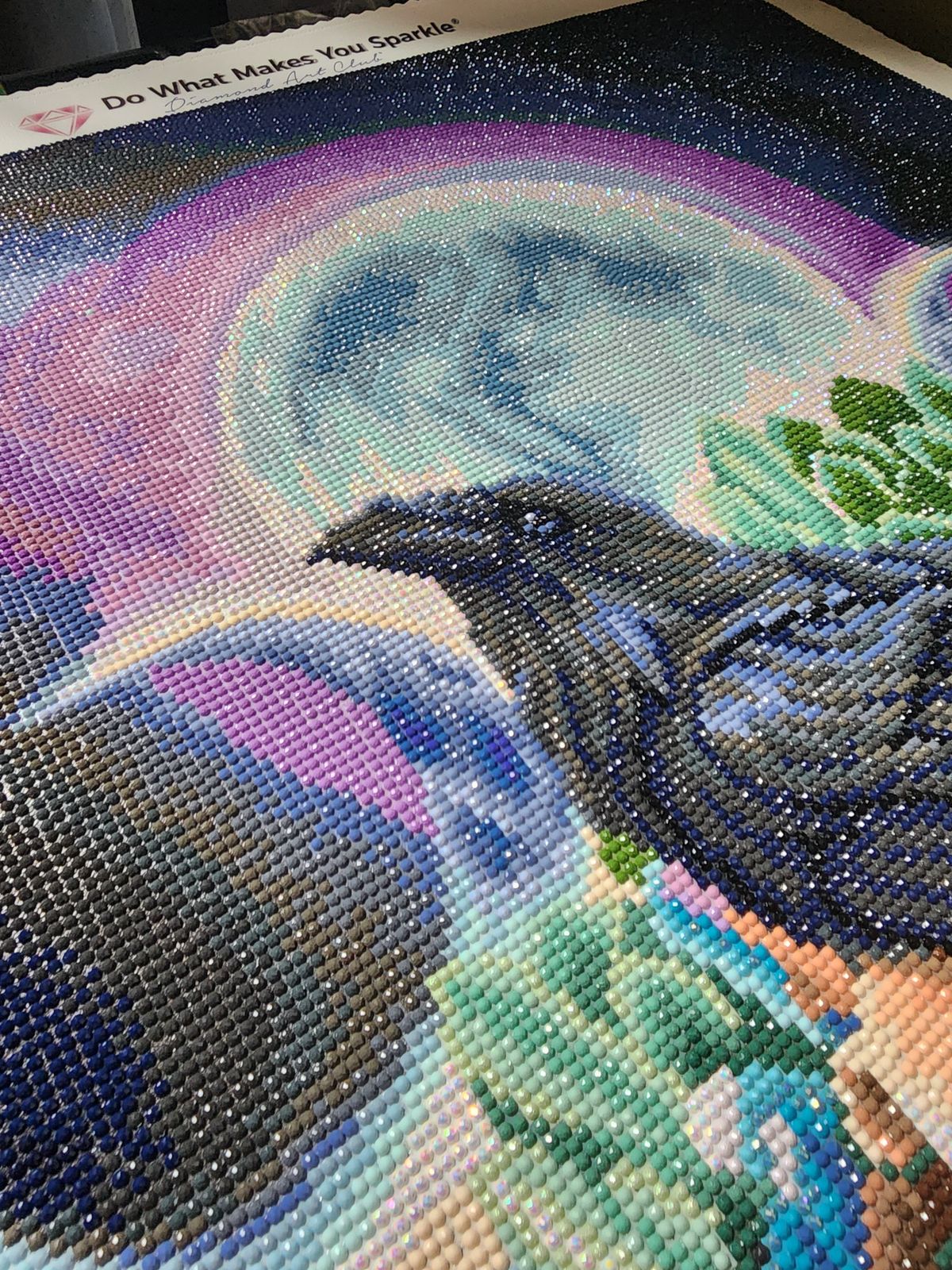 This is a beautiful piece especially with the vibrant diamonds and the AB diamonds. The design is beautiful. The only issue is have is the camvas adhesive wasnt all that good but a little glue helped out