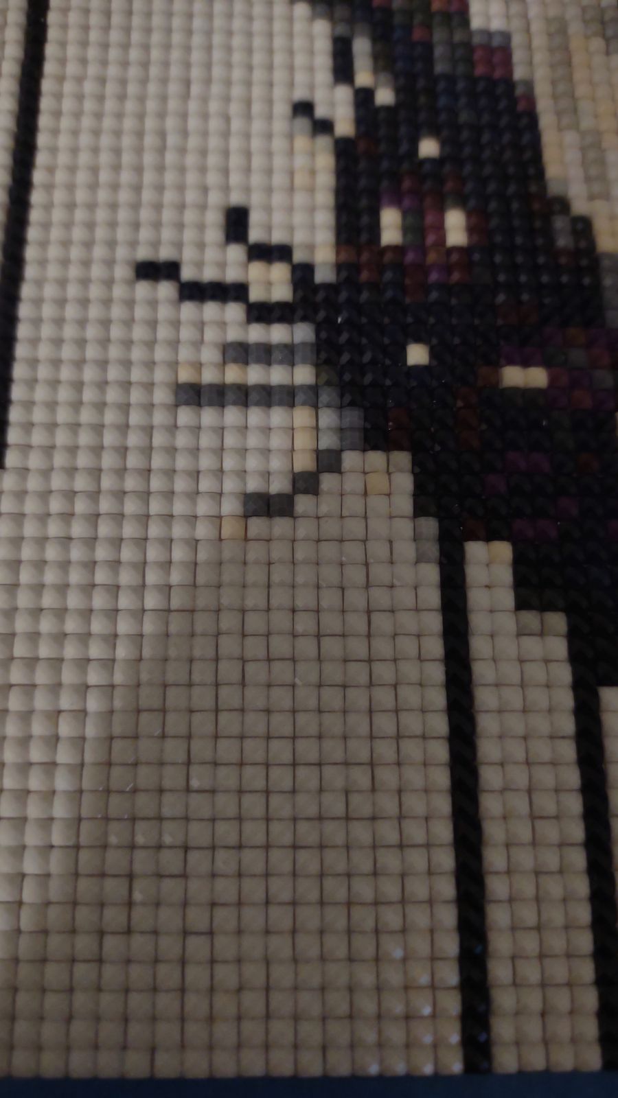 i do love this painting, the colors are beautiful and very nice. Although a lot of the diamonds i had received with this painting had air bubbles or a dot of a different color in them. these defects were mostly visible with the lighter colors. all of the diamonds in the baggies are ones with said defects, some having less than others. this issue gave me a limited amount of usable diamonds but i do believe ill still be able to finish this with most of the diamonds i have left with the exception of 3 colors. After separating the defects from the useable ones i realized i wont have enough of these 3 colors to finish this painting. I did e-mail support about these 3 colors, serial numbers being #7, #08, #18. support did still give me replacements for these colors despite the kit now being unavailable. The sizing is pretty good for a beginner though the amounts of colors can be overwhelming at first. many of my diamonds for this left little gaps between them again most notably with the lighter shades. Other than those small things this has been really fun to work on! i cant wait to start on the second one i bought
