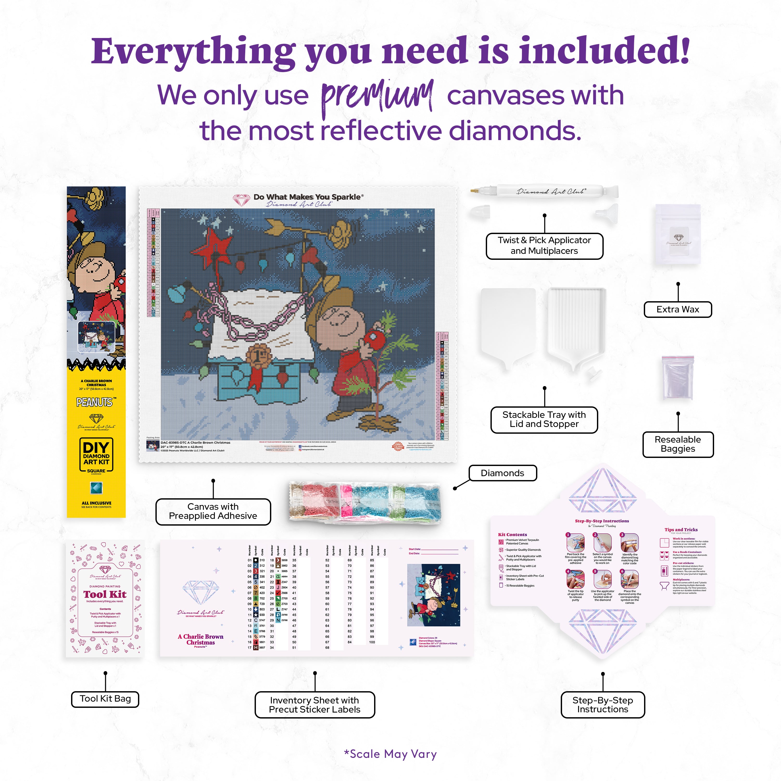 Diamond Painting A Charlie Brown Christmas 20" x 17" (50.8cm x 42.8cm) / Square With 29 Colors including 1 AB and 8 Fairy Dust Diamonds / 35,088