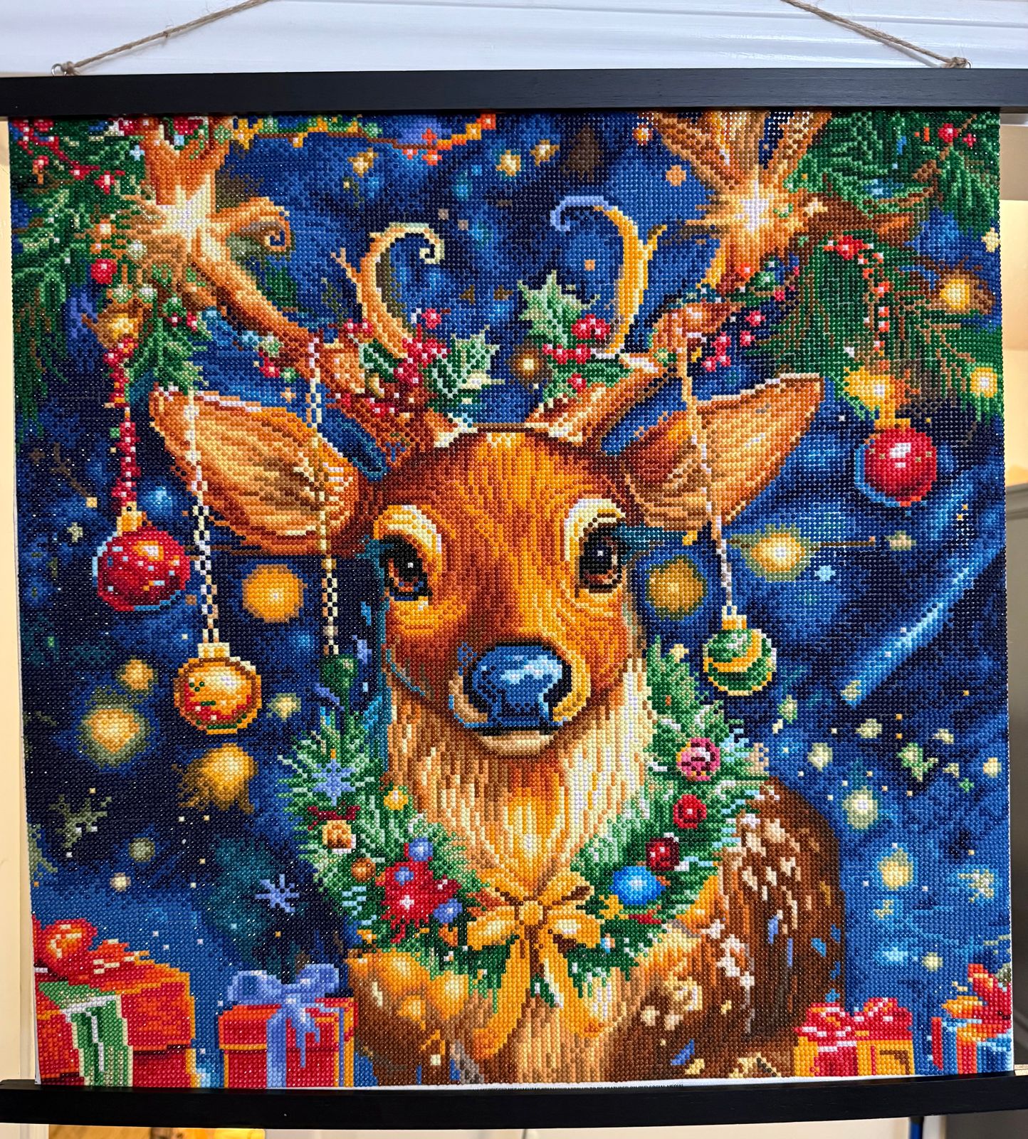 This was SO MUCH FUN to work on! I finished a week out from Christmas so I had time to enjoy it hanging near my tree! It definitely kept me in the Christmas spirit.