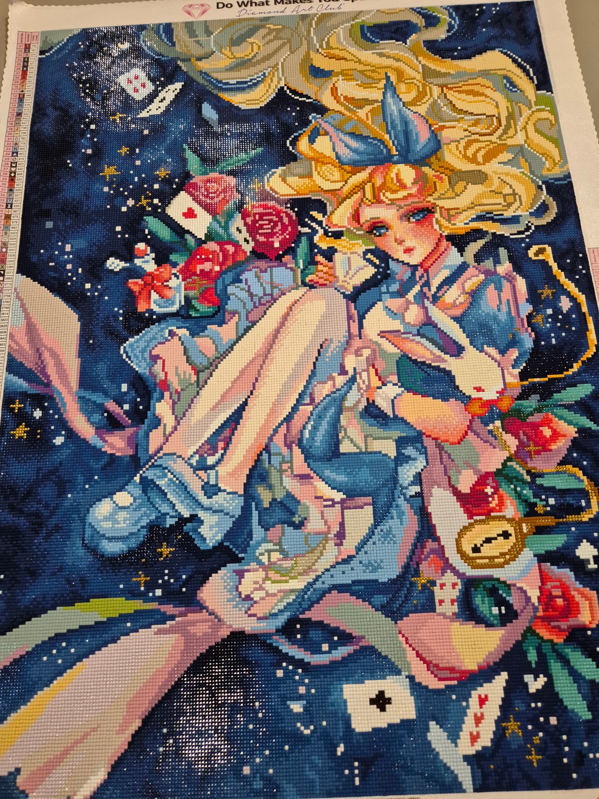 Alice in wonderland falling down was a challenging square picture. I completed it in 6 weeks. Would recommend this artist