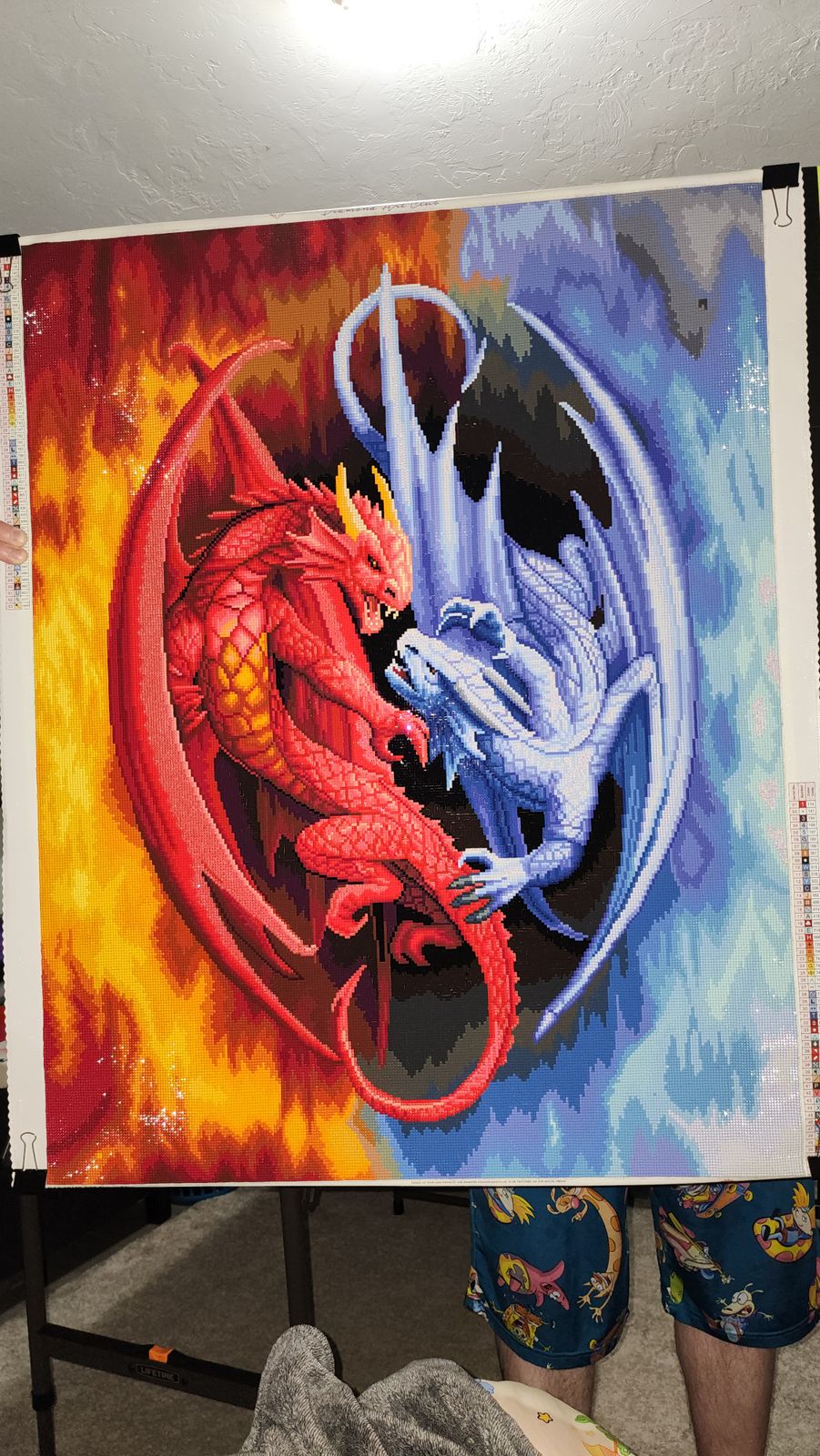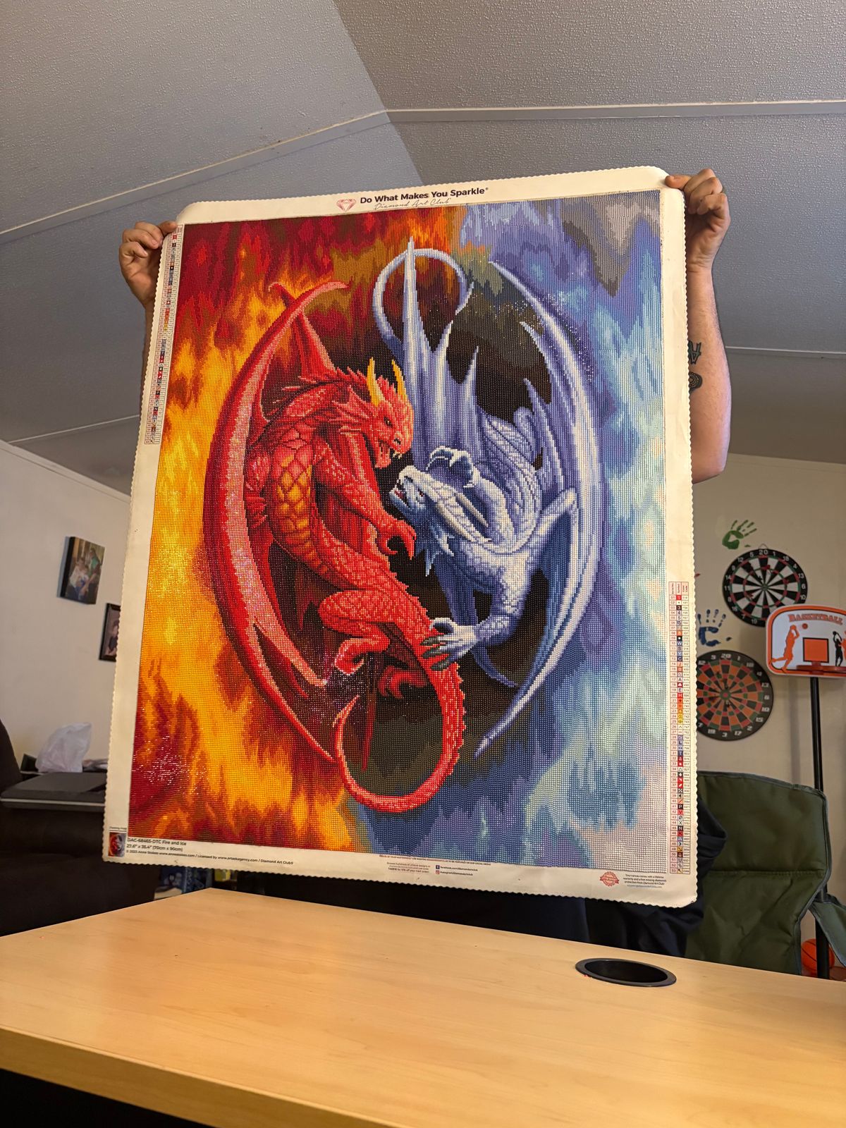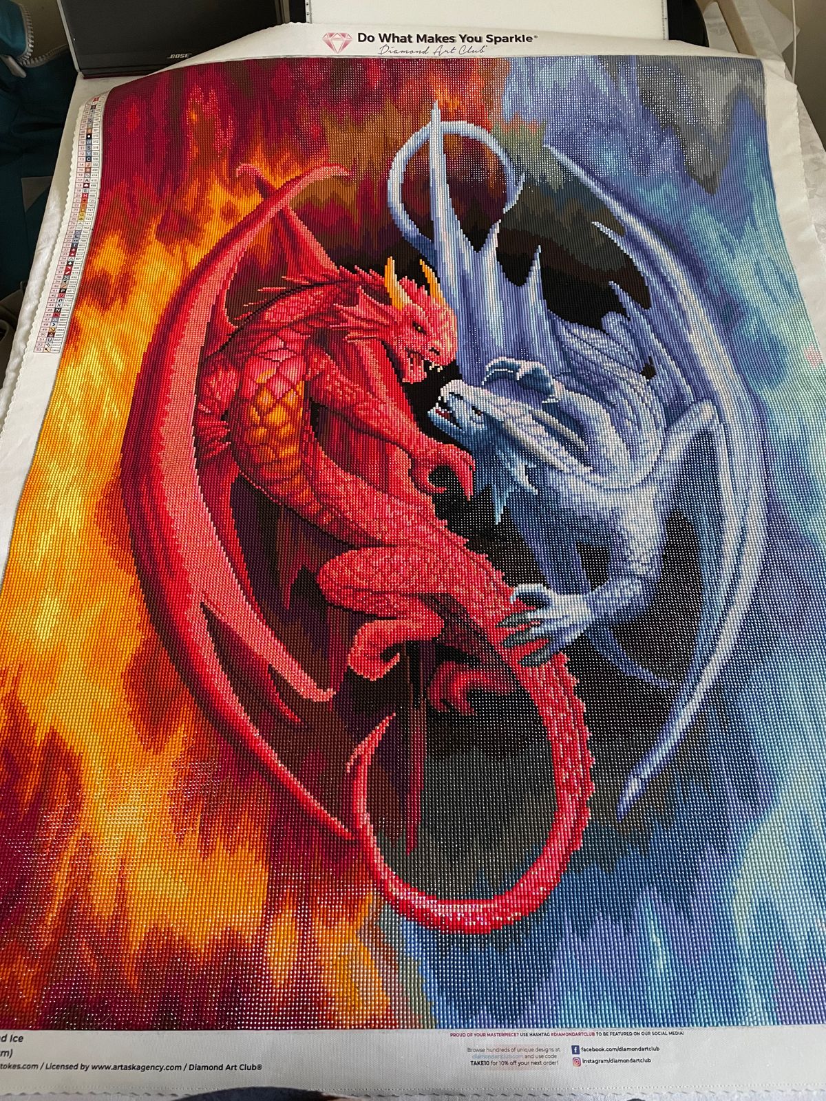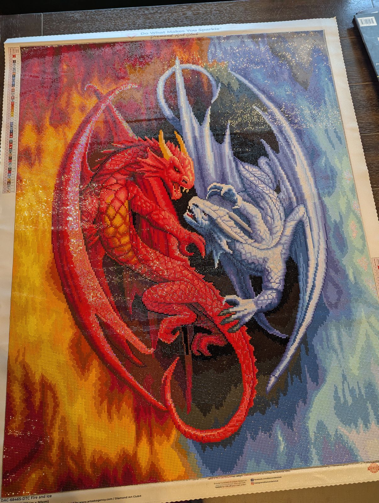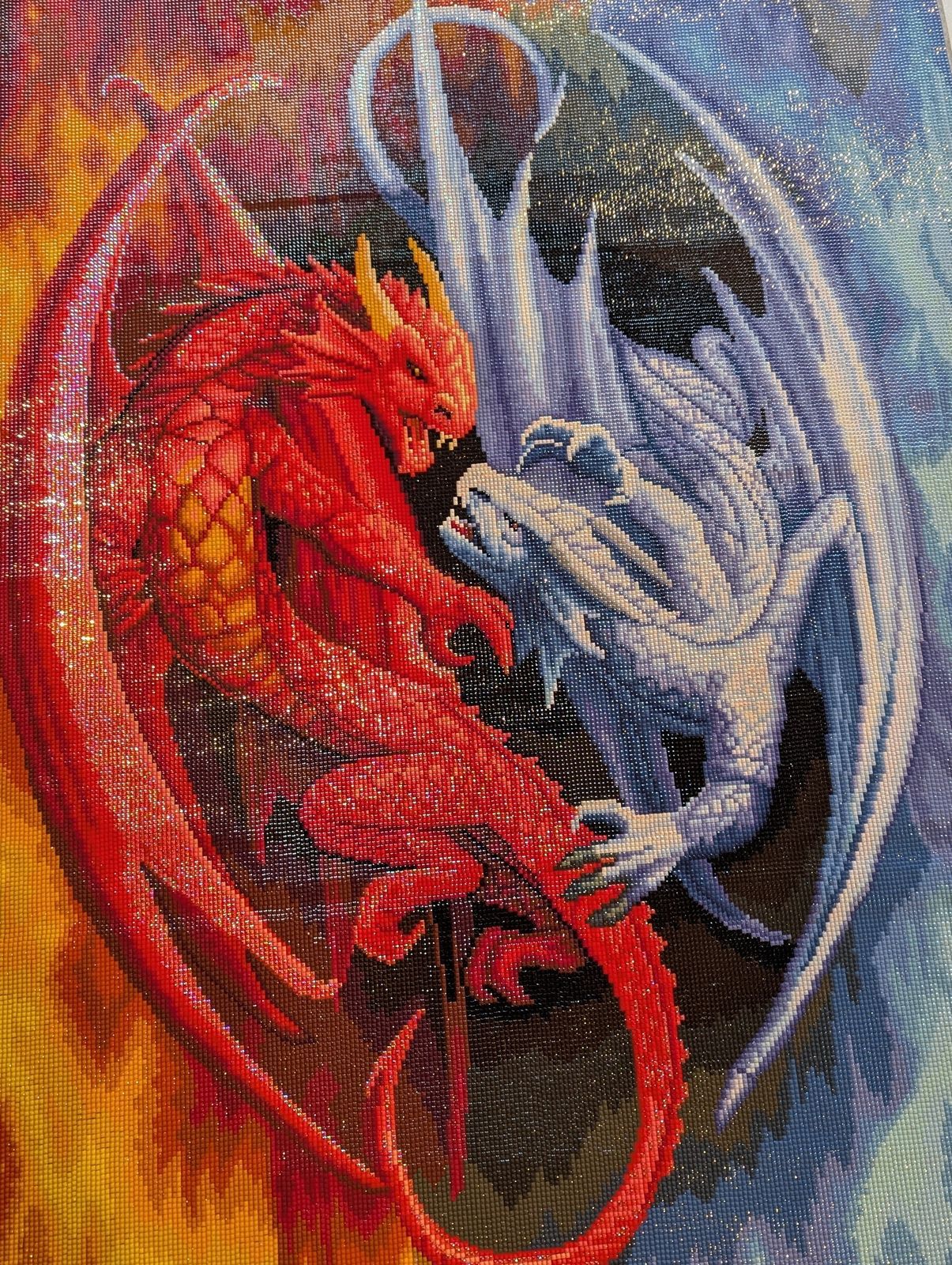 This was the first Diamond Art Club painting my husband did. He worked on it on and off for a few months and loved every second of it. It was also his first square drill painting and now he prefers them lol its a very large peice and planned to be hung as a center peice on a bedroom wall. Bright colors as well! He was very happy with our purchase!