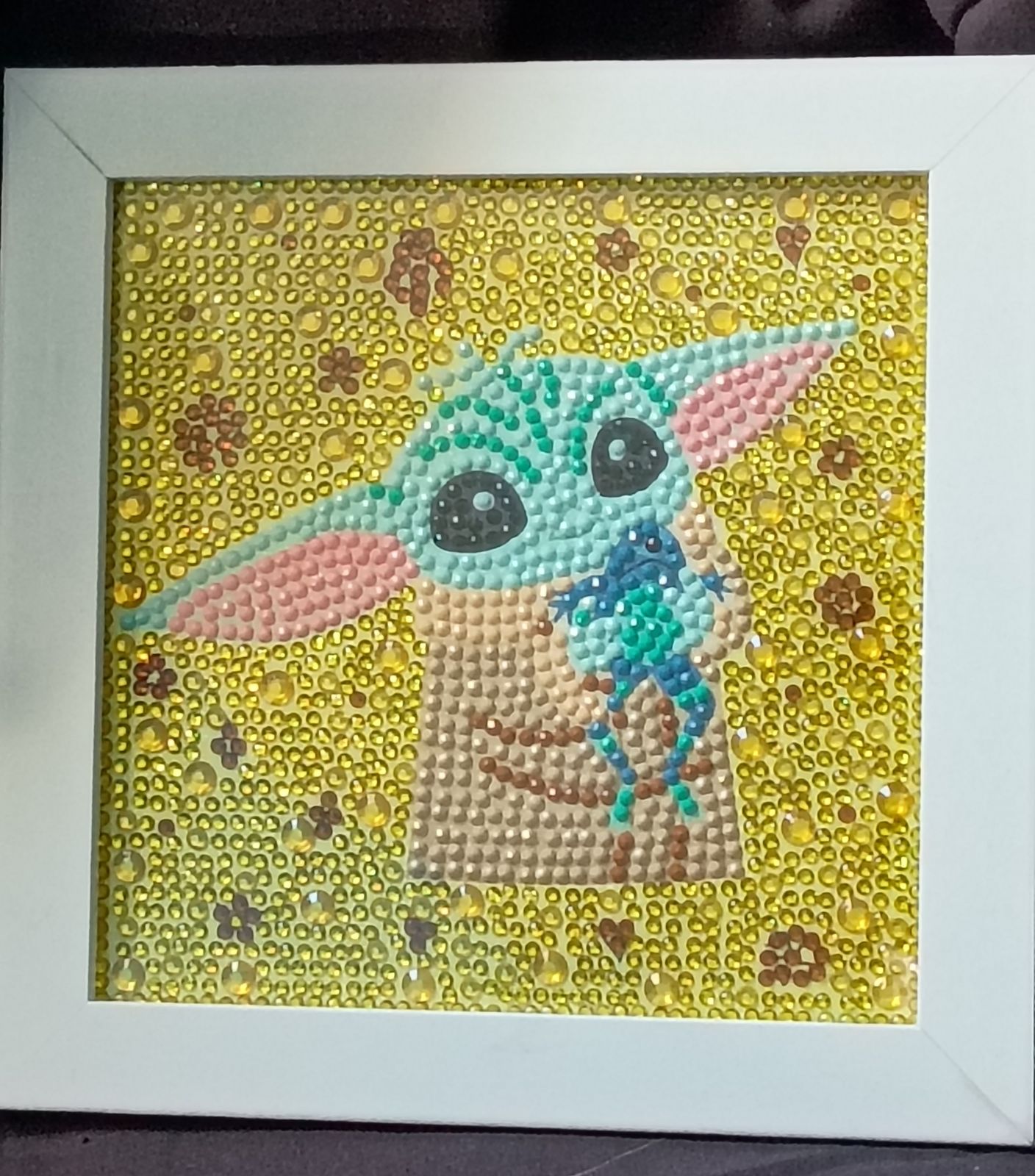 Baby yoda aka Grogu , is my fave he is so cute i really enjoyed making this one and loved that it came with the frame so i could put it on display right away 💗 😊!!!!!