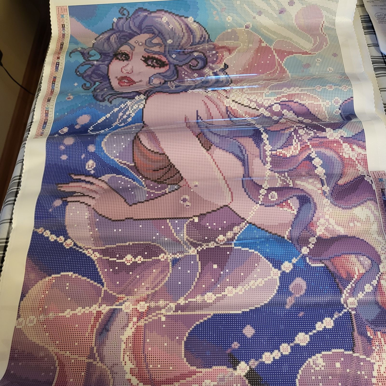 Finished "Galatea" Artist - Miss Holly from Diamond Art Club. Started 9/1/25 Finished 9/14/25. 22 inch by 30 inch (55.6cm x 76.0cm). Older kit, No treasure card. Took me 33 hours and 14 days to complete. Round drills, 50 colors, 2 ABs, 3 Fairy Dust 55,752 drills. I had a blast doing this canvas. And I love the color purple 💜😁💜.