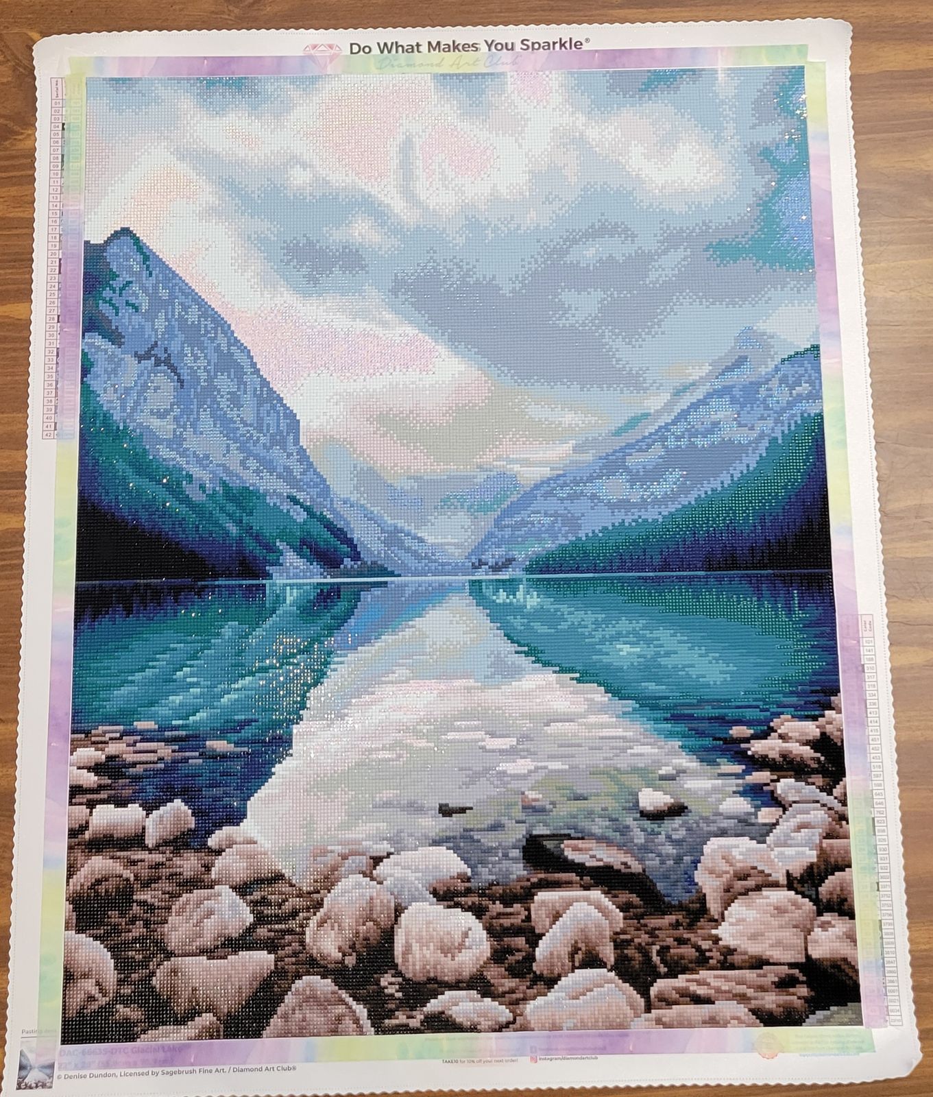 This is the first diamond painting I've tackled. I chose it because it reminds me of home in Montana. I can't believe the sparkle of the drills! It is time consuming, but definitely very easy. I'm almost done with the rocks. I'm so excited to see it when it's done!