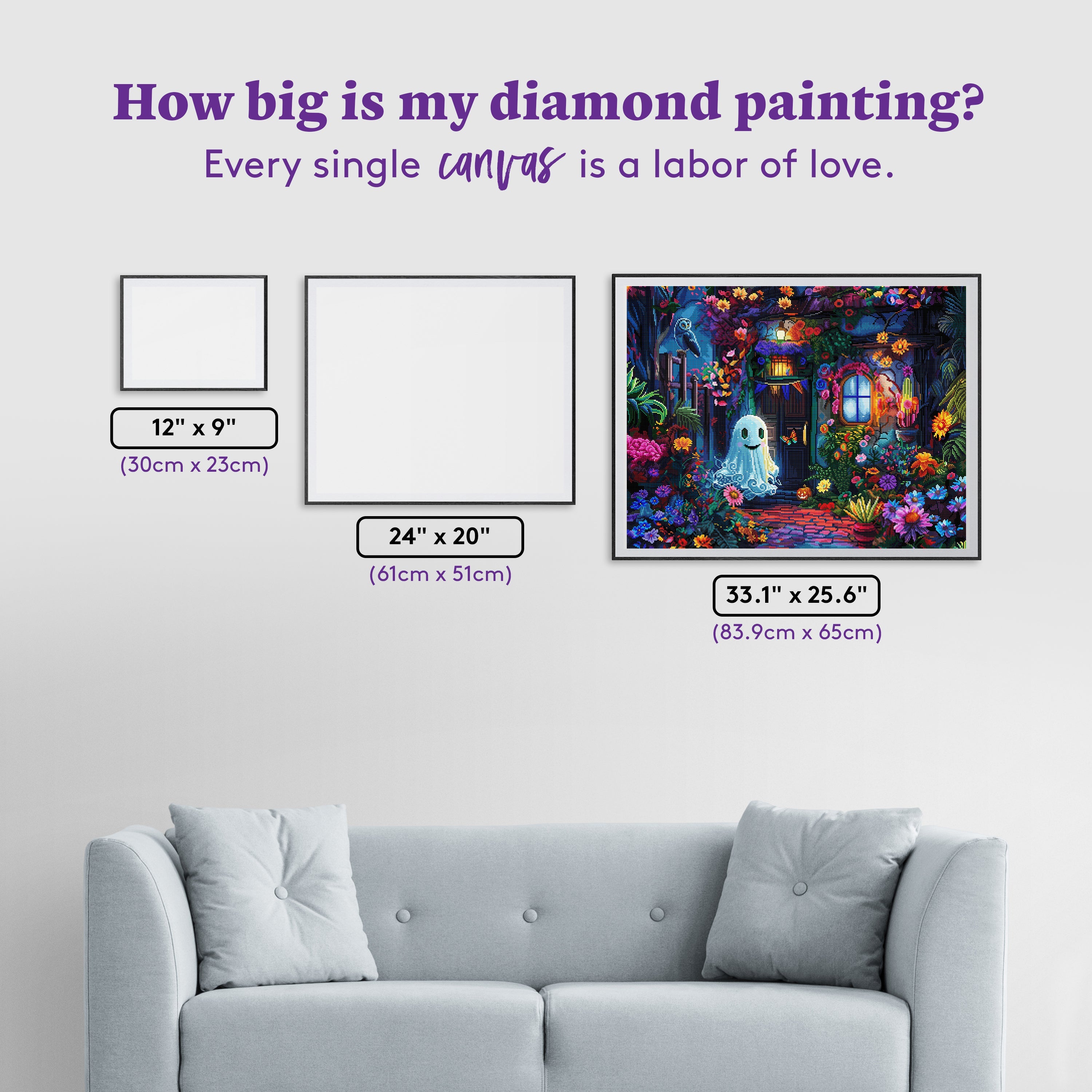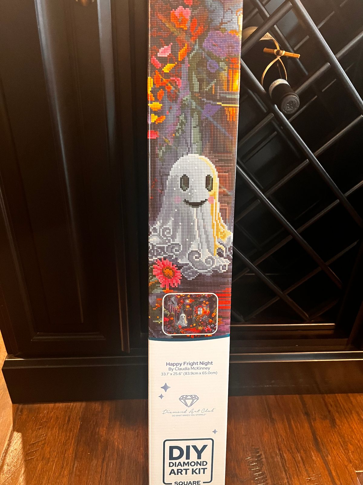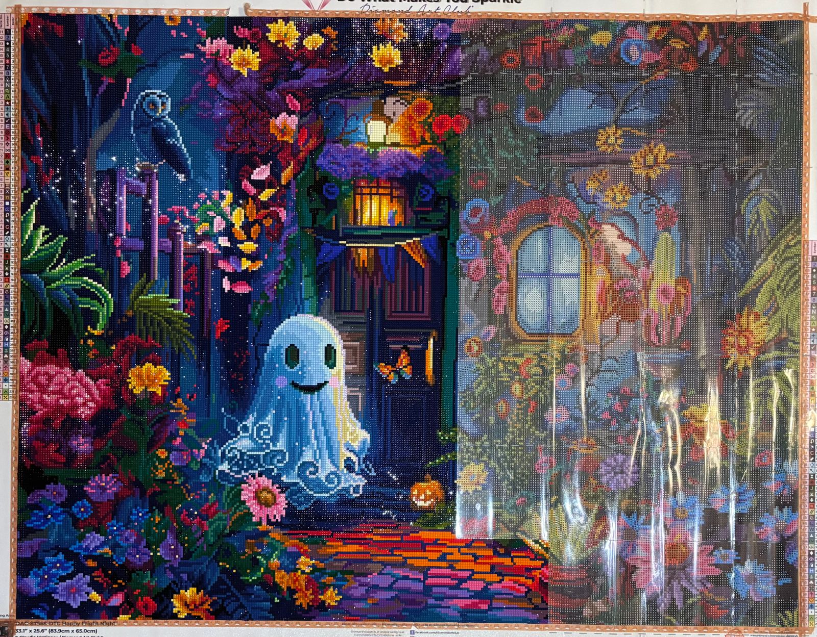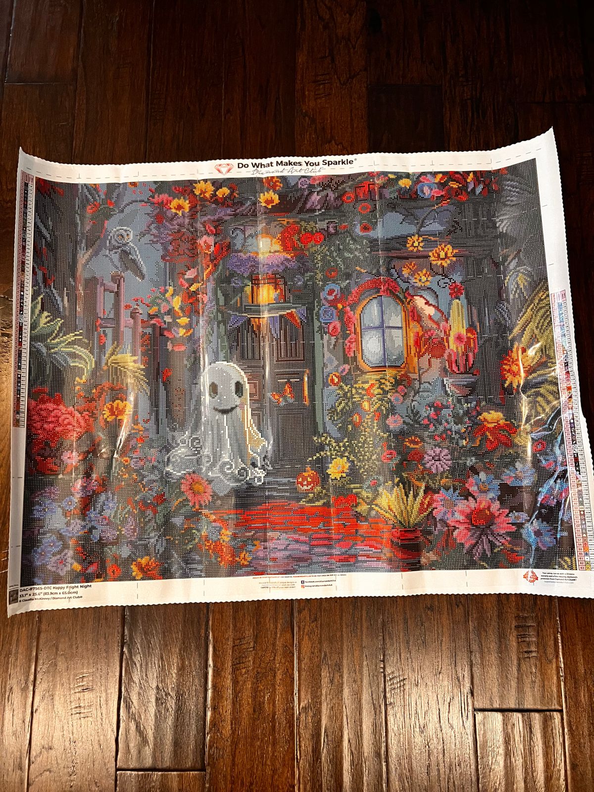 This is a cheerfully ghostly canvas. Love the colors. Will go great with my spooky season decorations.