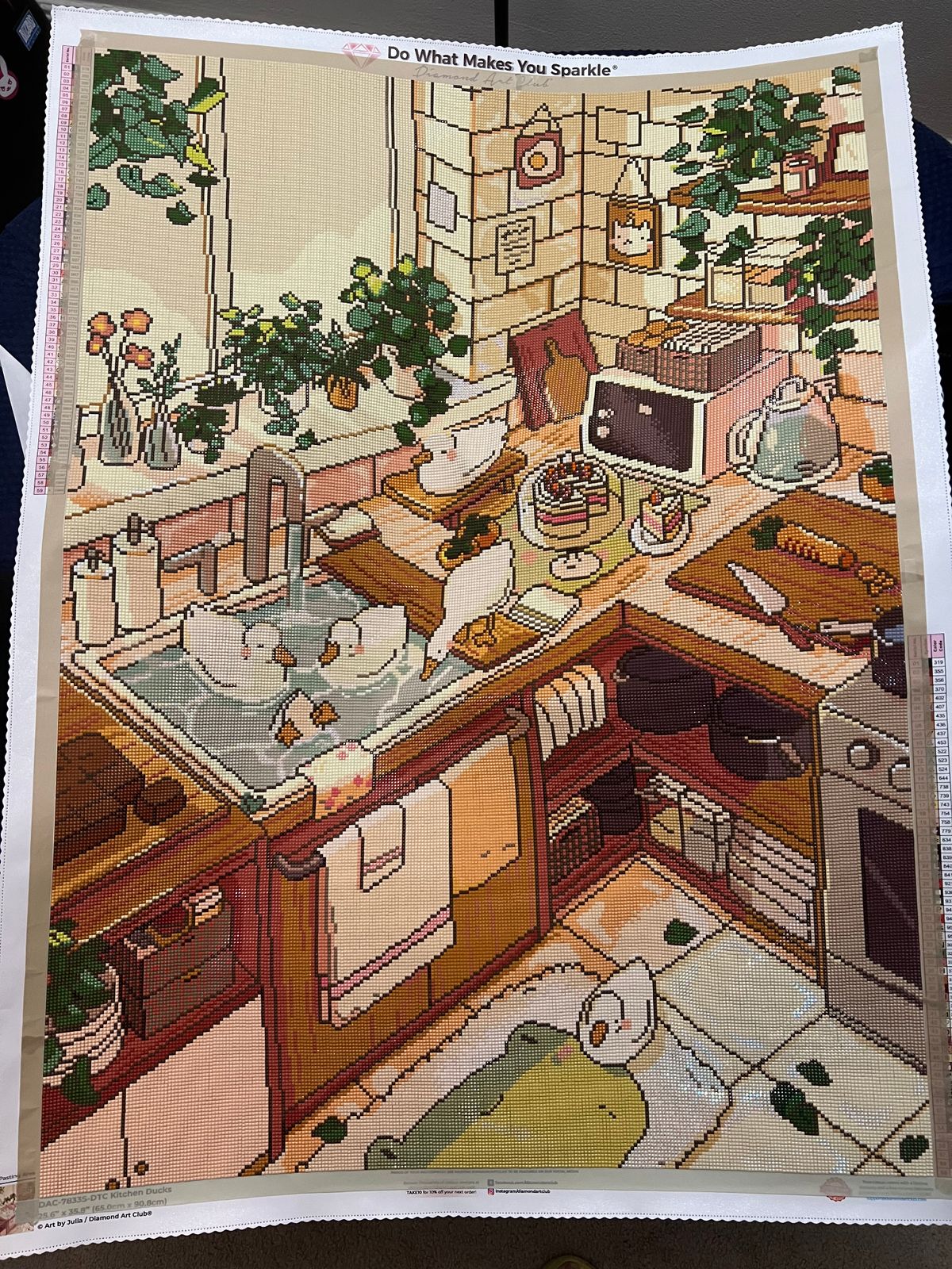 I love these ducks. They’re so cute, and it was a blast working on the canvas. There’s lots of color blocking and the palette is very home-y. And as always, drills and canvas are very high quality!