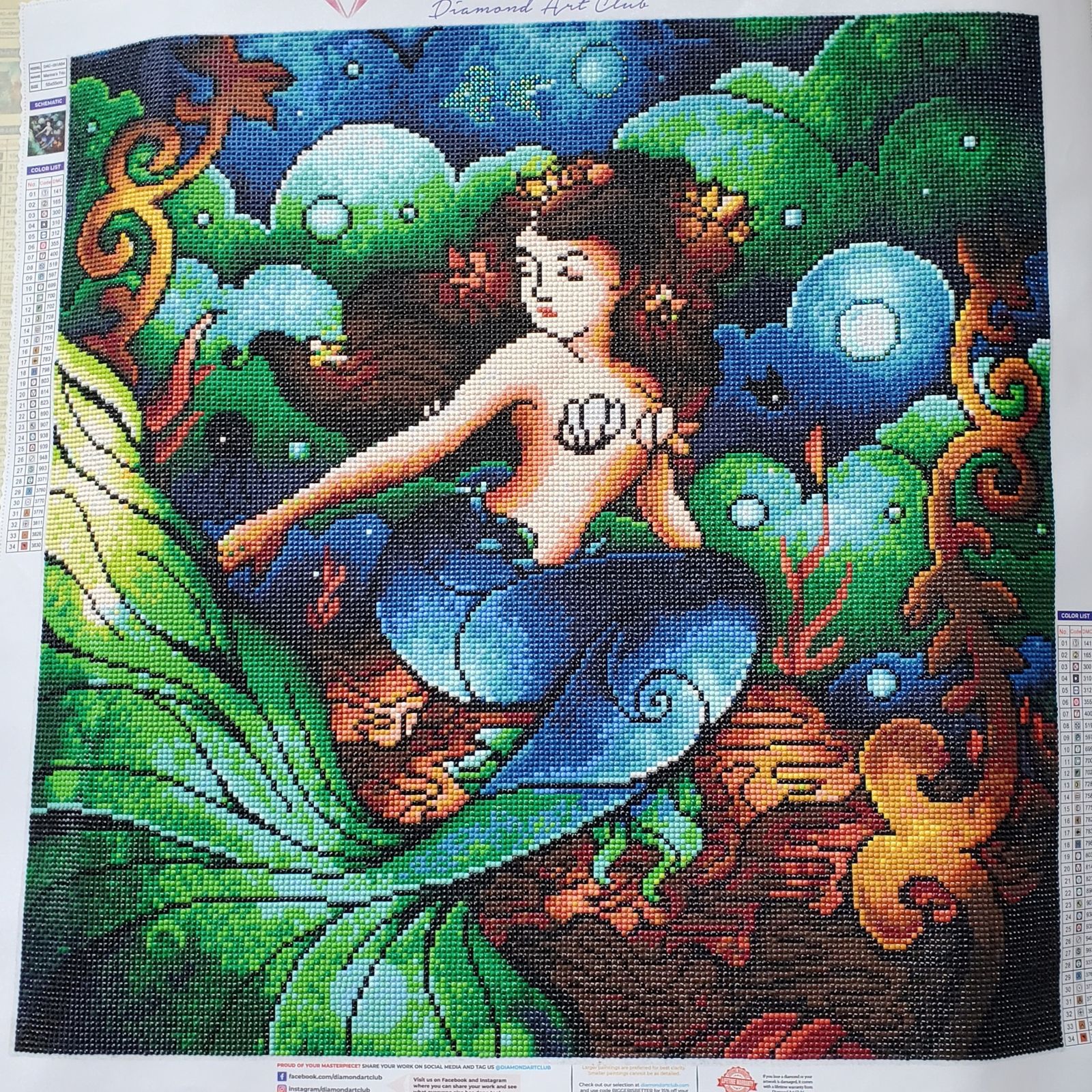 I like Mandie Manzano art and this one was fun to do. It's not very large and didn't take long to complete. The kit is great quality as usual. The Trio of aquatic friends are a bit tough to spot when doing the kit but stand out nicely when done.