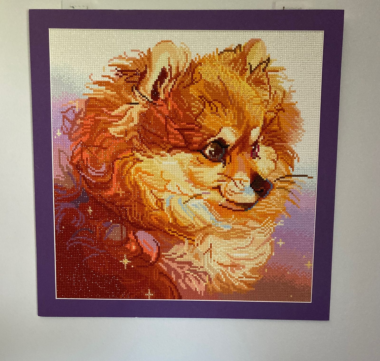 I ordered this kit with my long time neighbor in mind. It looks like her much loved pup. I finished it and gave it to her. She loves it and it proudly hangs on her wall. Love the work of this artist. Well done DAC!