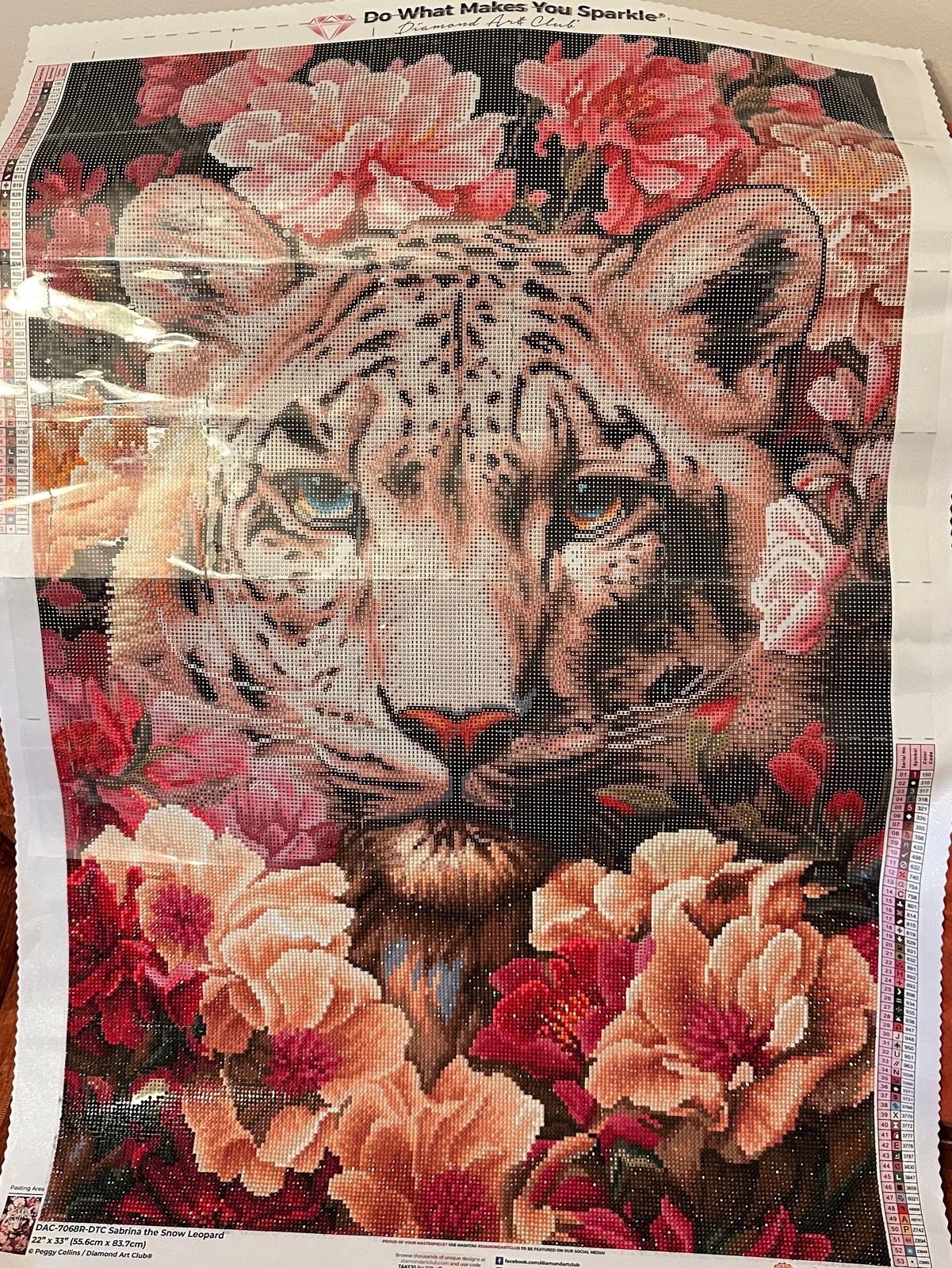 This was a pleasant challenge! The flowers had areas of "confetti", but also nice colorblocking areas in the leopard's face that I could speed through. I also did my first color substitute on the chest (like another person did) and am pleased with how it turned out.