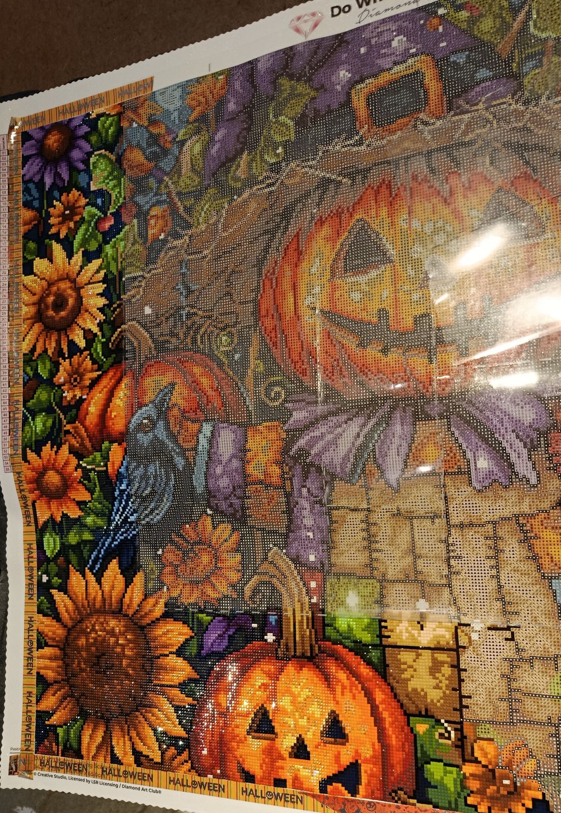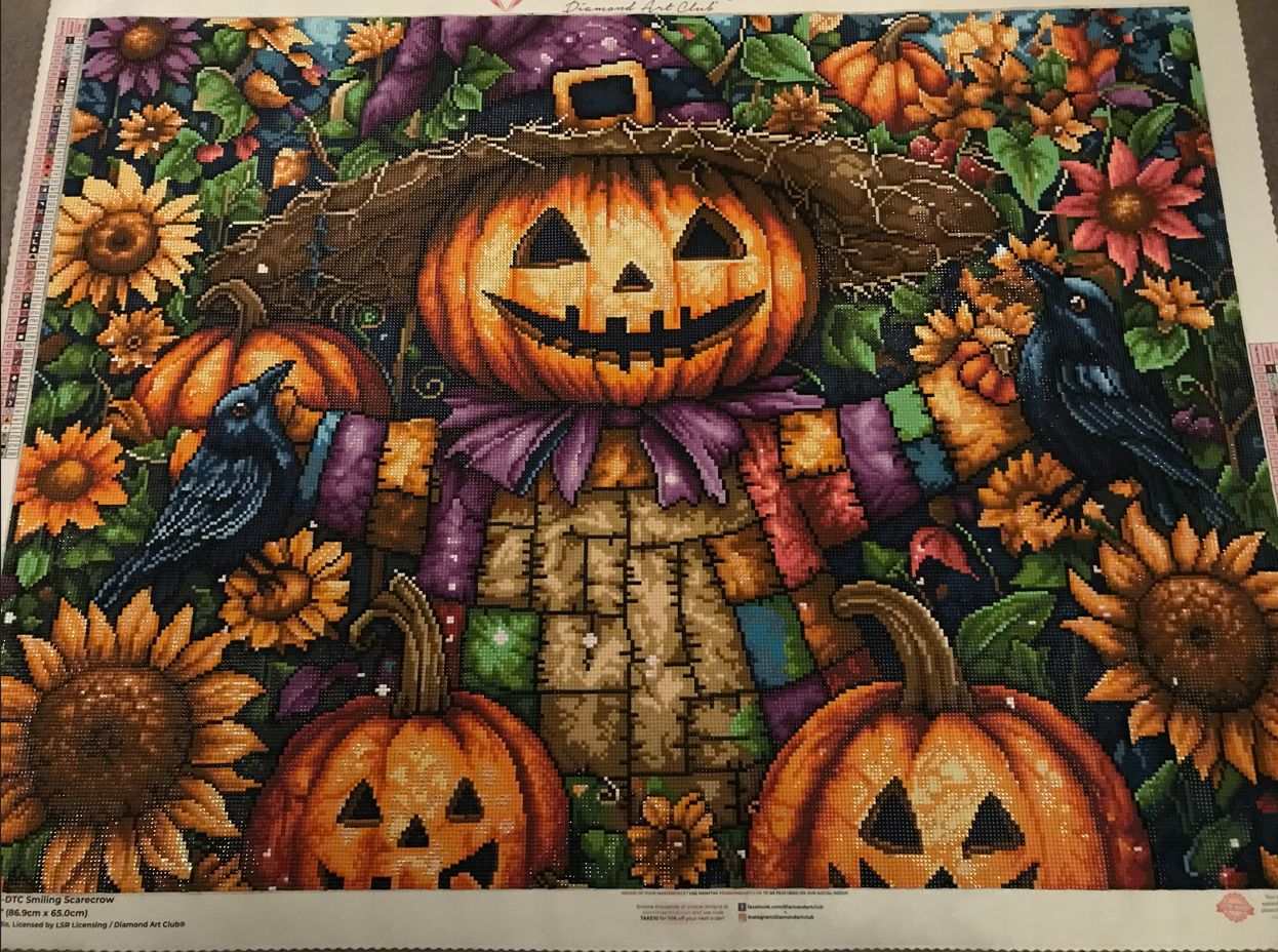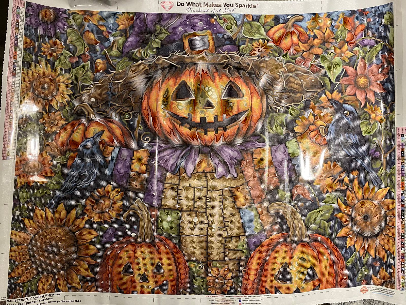 This scarecrow canvas is so pretty when done. It is much better in person than the picture. It took me a while but it kept me busy and the colors are beautiful together.