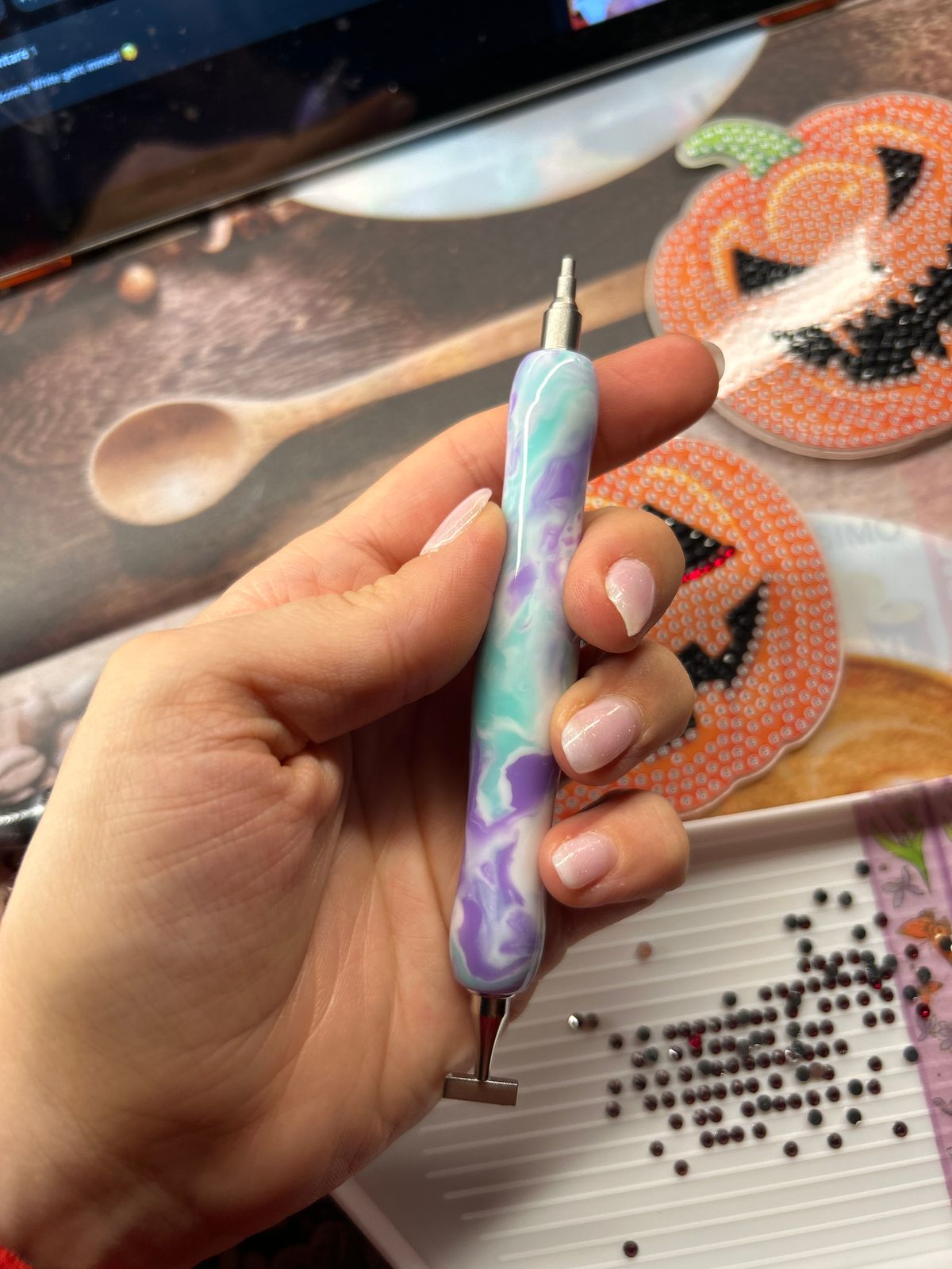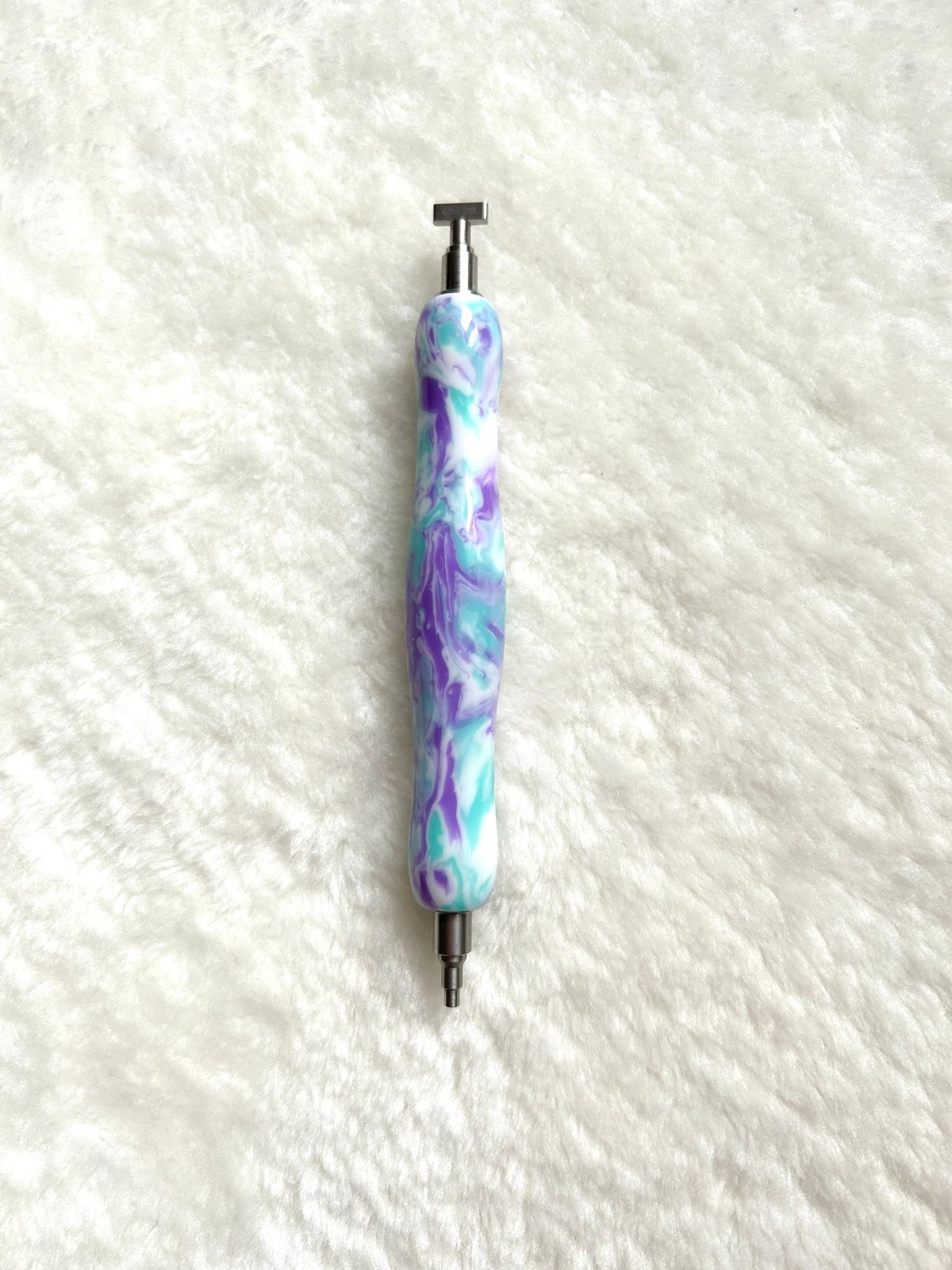 Experience our Twist-On Dual-Threaded Premium Drill Pen in the vibrant Maui Swirl. This pen, measuring 9.6 cm (around 3.8 inches) in length without the tips, is crafted for easy handling and precision. It features two threaded holes, making tip switching effortless. A metal single placer is included, allowing you to start your projects immediately. The dual-threaded design ensures a stable fit, preventing any wobble for accurate placement. The ergonomic design, paired with the lively Maui Swirl pattern, offers both functionality and a pop of color, making it a must-have tool for both enthusiasts and professionals.