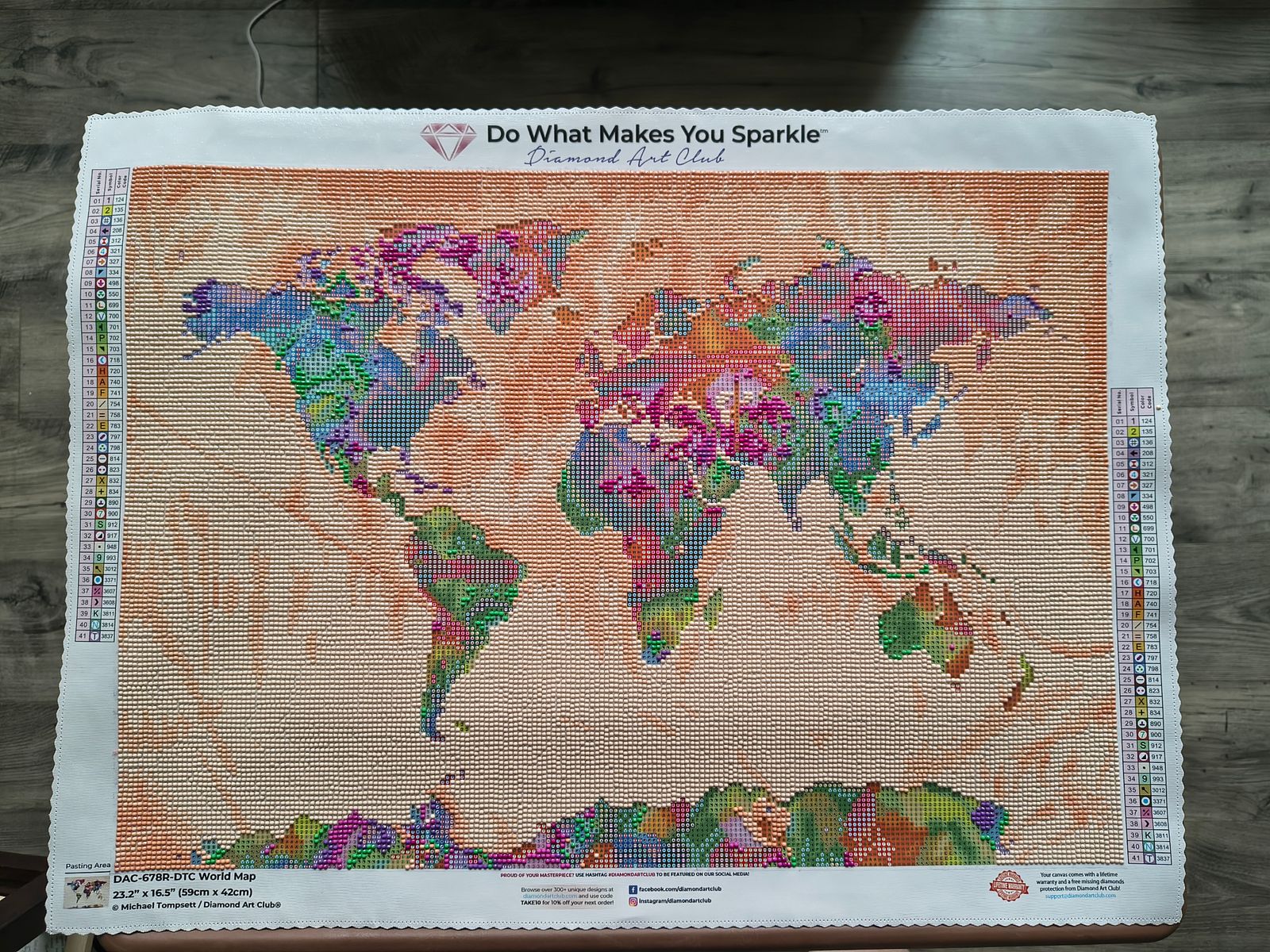 Keep the world at your finger tips by traveling the 7 continents at your leisure with this dazzling diamond art painting of all the Earth's countries. Great for both the home and office.