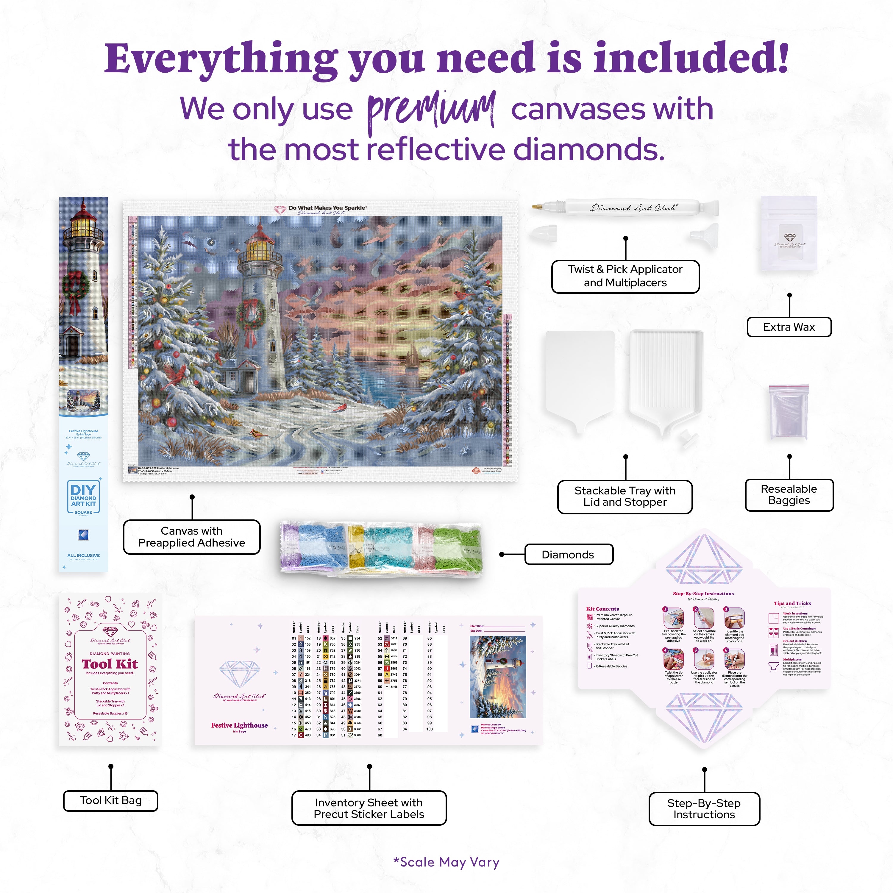 Diamond Painting Festive Lighthouse 37.4" x 25.6" (94.8cm x 65cm) / Square with 60 Colors including 3 ABs and 5 Fairy Dust Diamonds / 99,441
