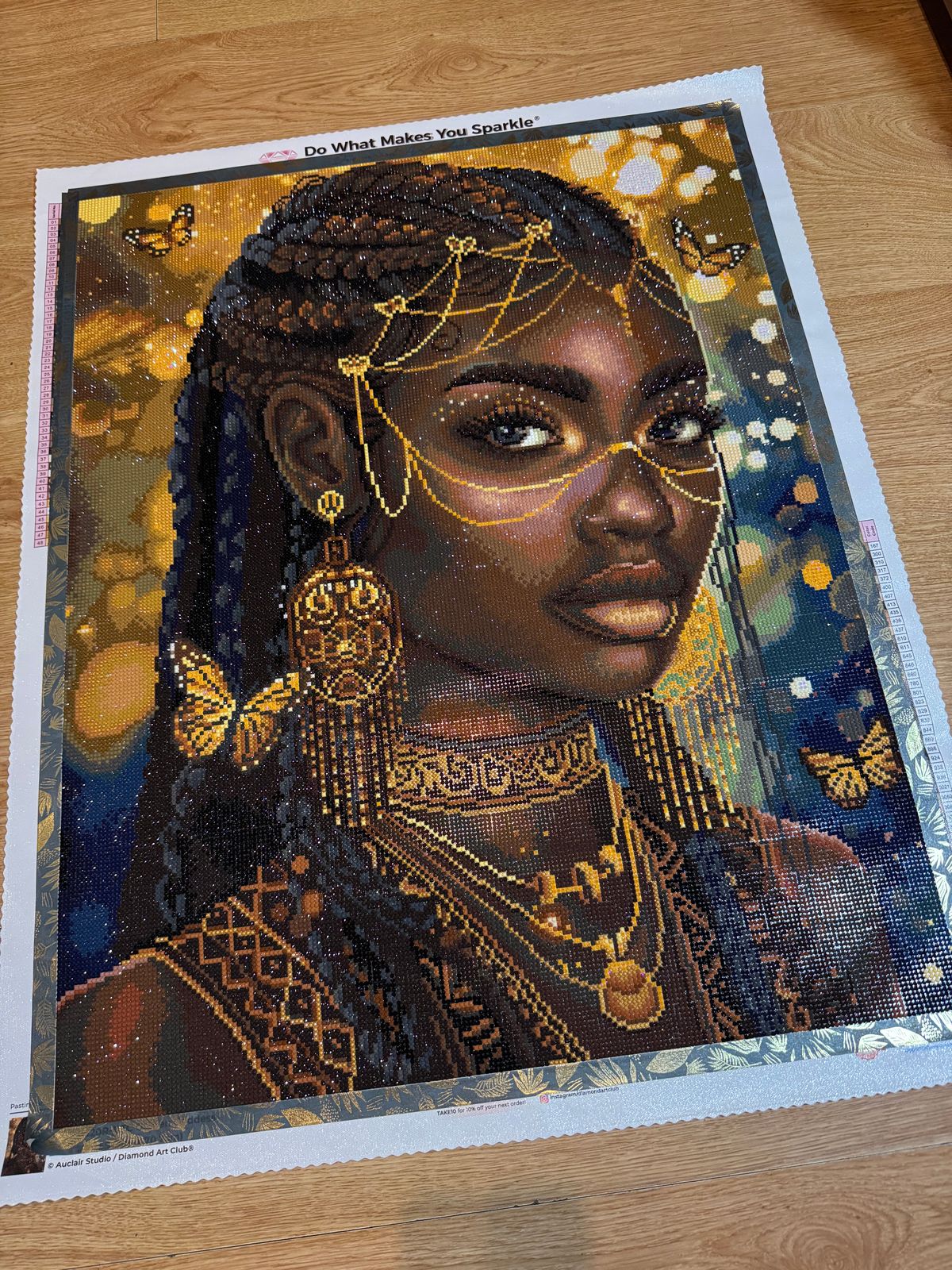 This image is Stunning. I enjoyed working on her. Working on helped me come to the realization that I like working with rounds more than squares.. rounds waay easier to multi-place.. the drill quality superb as usual. One negative the yellow/golden AB drills had a chemically odor that did not go away, and has lingered in my storage container.which is why i only gave 4 stars.. Im not sure if thats normal.