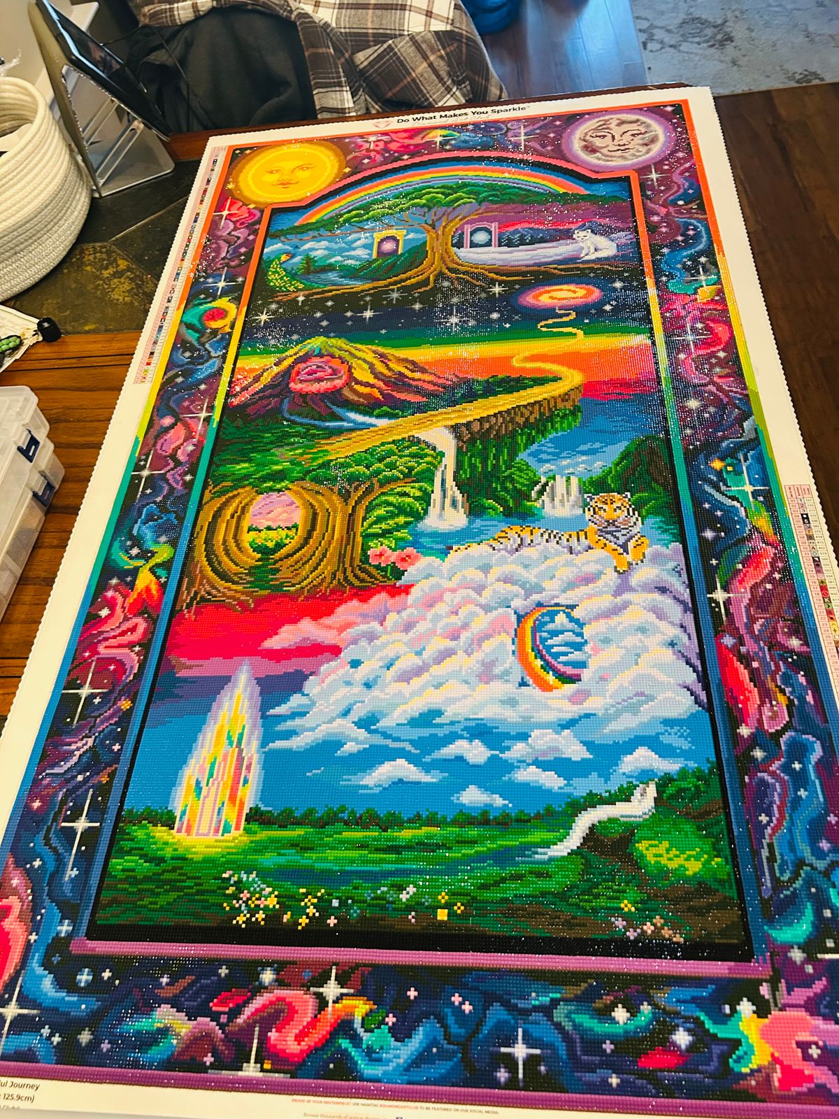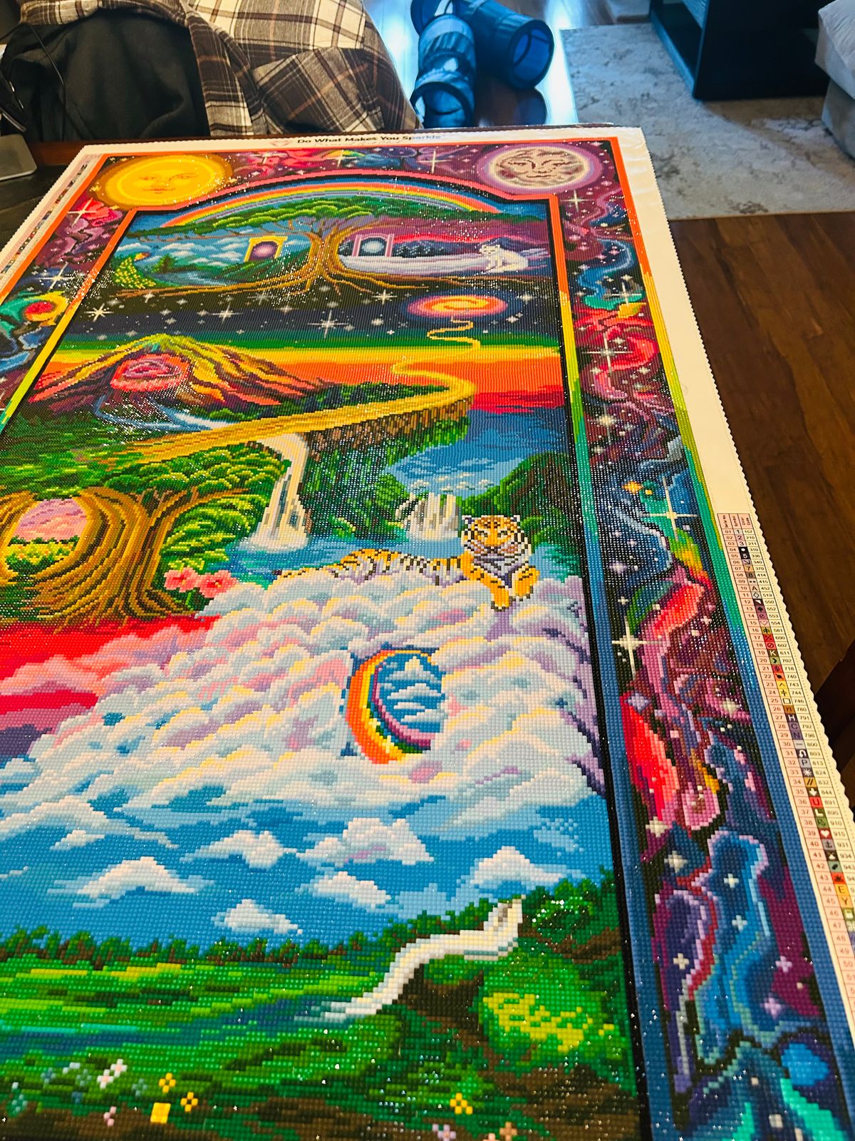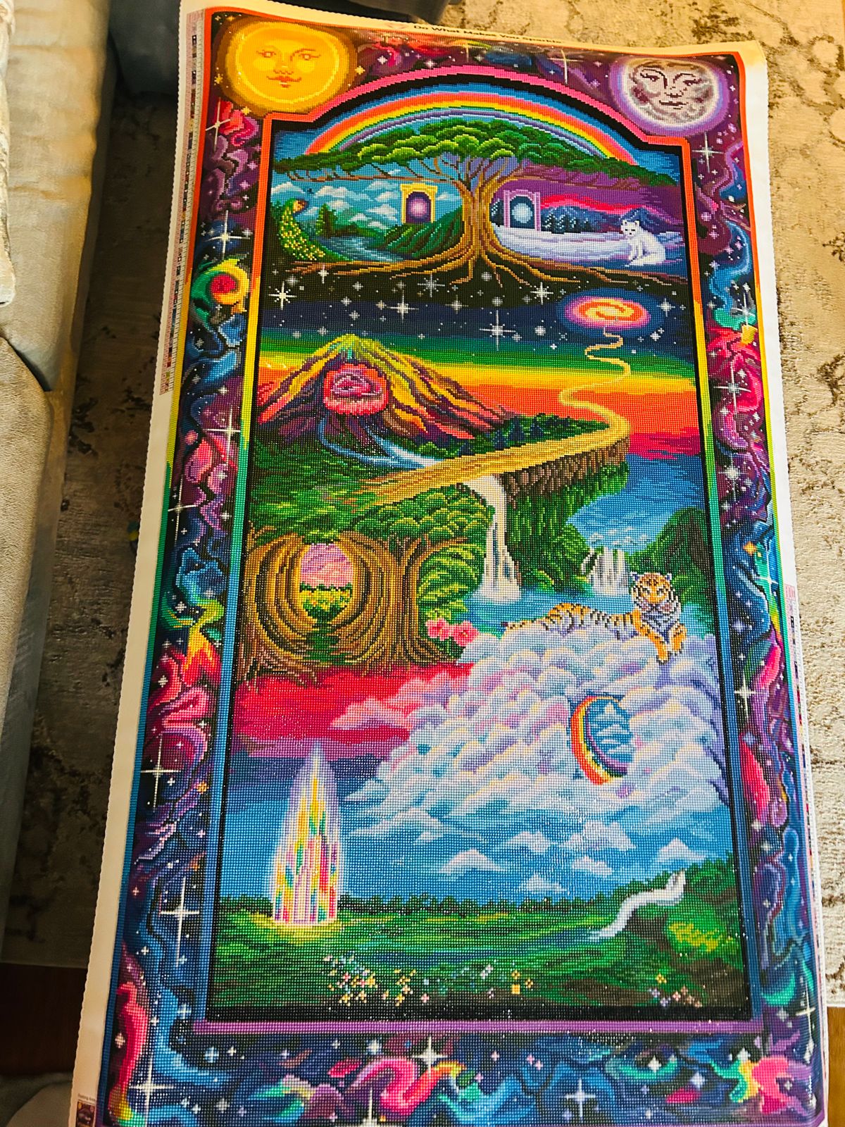 i havent started it yet, but i will say, sorting the diamonds have been a blast. seeing all the colors i havent seen before besides 3 of them, is absolutely stunning. I knew this is gonna be the biggest one yet, and im intimidated, but im SUPER excited to start this project asap!!!! get it, spend the money. you wont regret it!