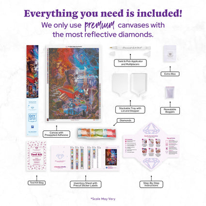 Diamond Painting Fairy Tales 22" x 34" (55.8cm x 85.6cm) / Square with 69 Colors including 2 ABs and 1 Electro Diamond and 2 Fairy Dust Diamonds / 77,056