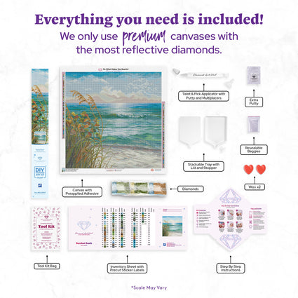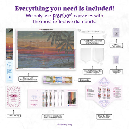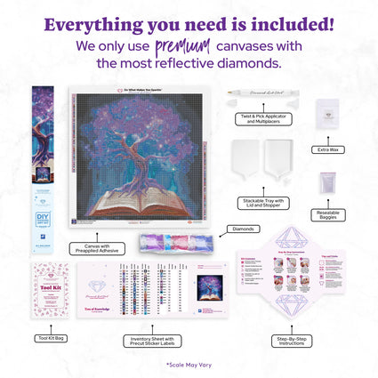 At Diamond Art Club®, we believe in providing the best diamond painting experience for our customers. Our canvases are velvety smooth and feature poured adhesive that’s free from bumps and wrinkles. Our 5D diamonds are multi-faceted for maximum shine, and they come in a rainbow of stunning colors. We also include a tool set with every diamond art kit. Everything you need to complete a custom diamond painting is included in the box.