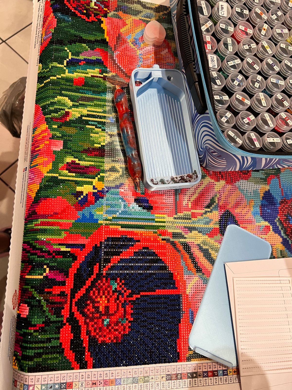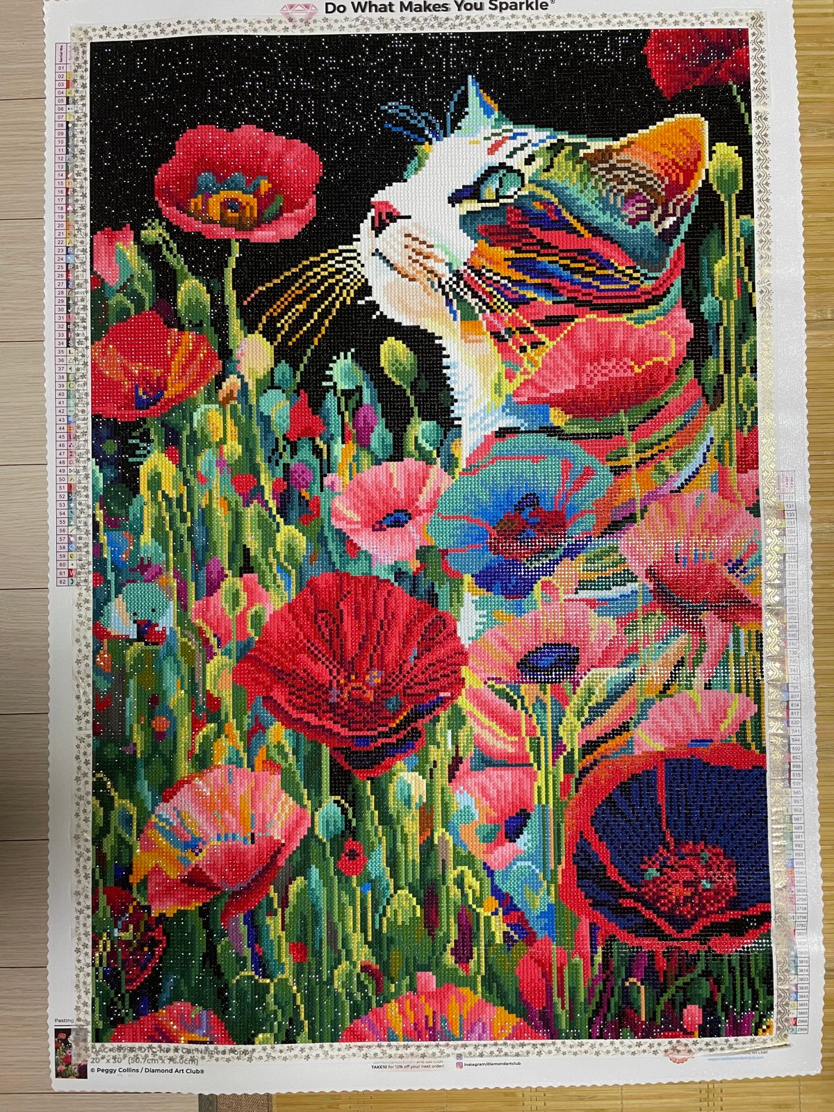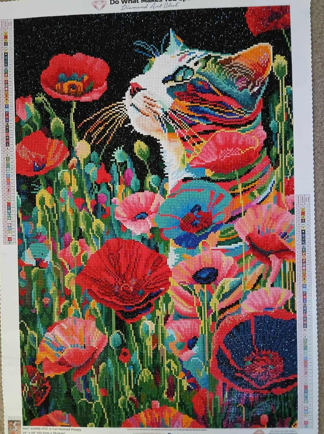 Diamond Art Club never disappoints. This reminded me of my kitty Honeybell. I love all the bright colors and poppies are my favorite flower.