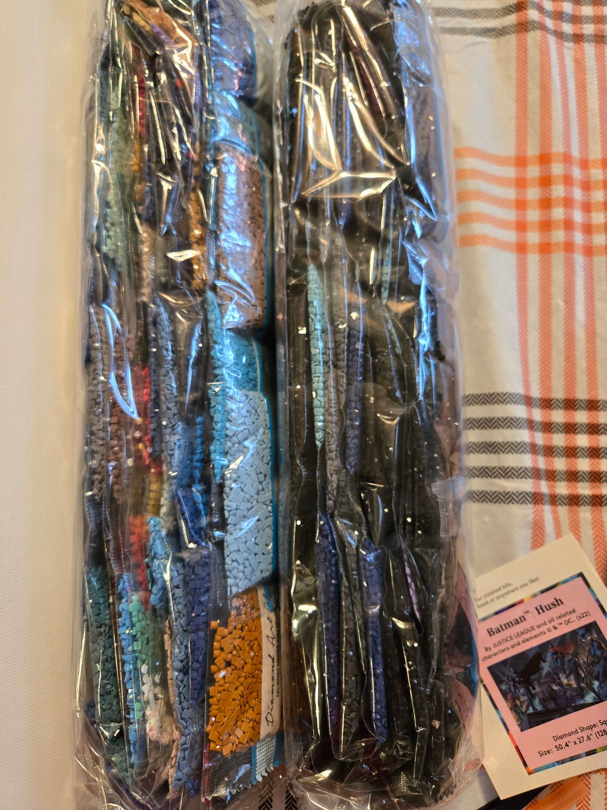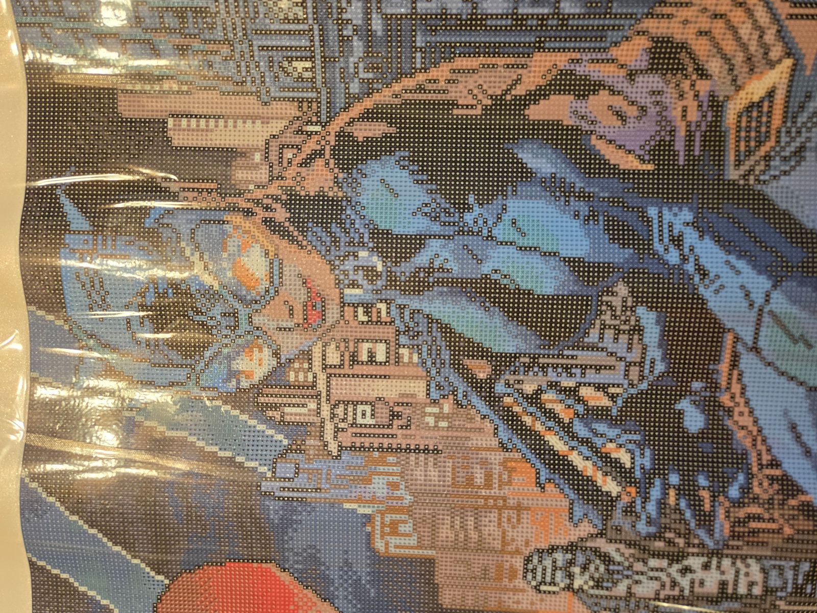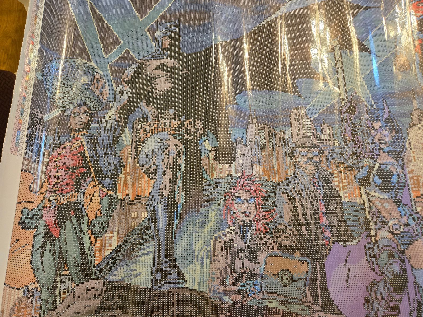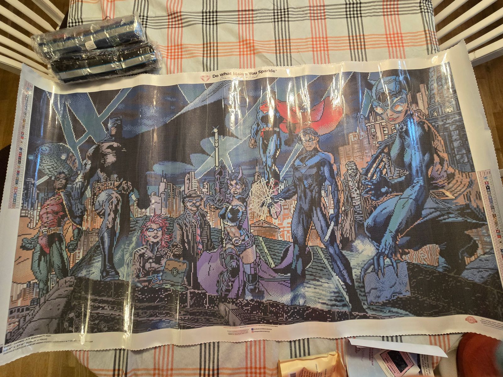 Started in January 2024 and now it is August and only halfway done! This is easily the biggest/longest diamond painting I have. I love how it incorporates so many Batman figures (Superman is a it odd, but I like him so it’s okay). The only struggle I have is not having enough space for it as it is very long and wide; being able to reach all of it is difficult as a short person too and I find myself having to flip it upside.