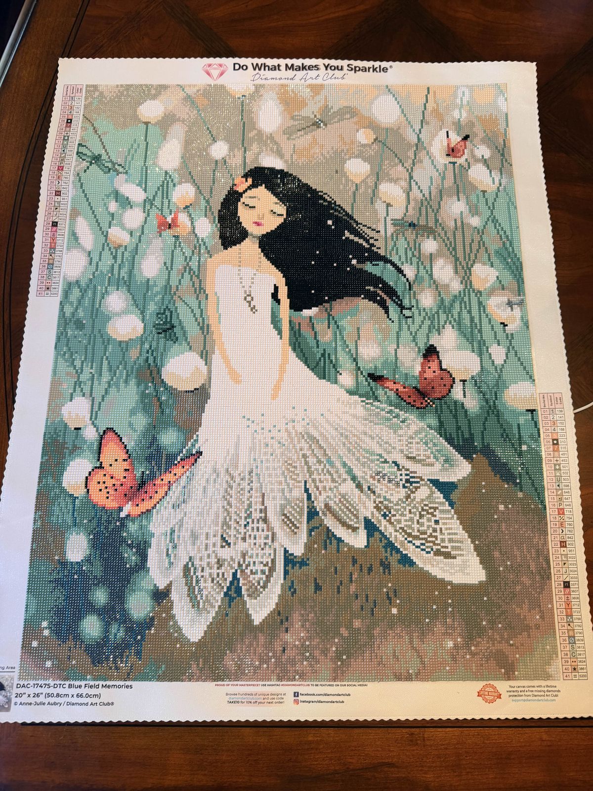 This was my very first diamond painting I've ever done. I have a good friend who suggested starting with DAC so I did. I loved this image for it's whimsical, feminine feel. I found the process to be simple and very peaceful. I had all of the supplies I needed and I'm very happy with the final result. I have bought several more DAC kits since and love the quality!