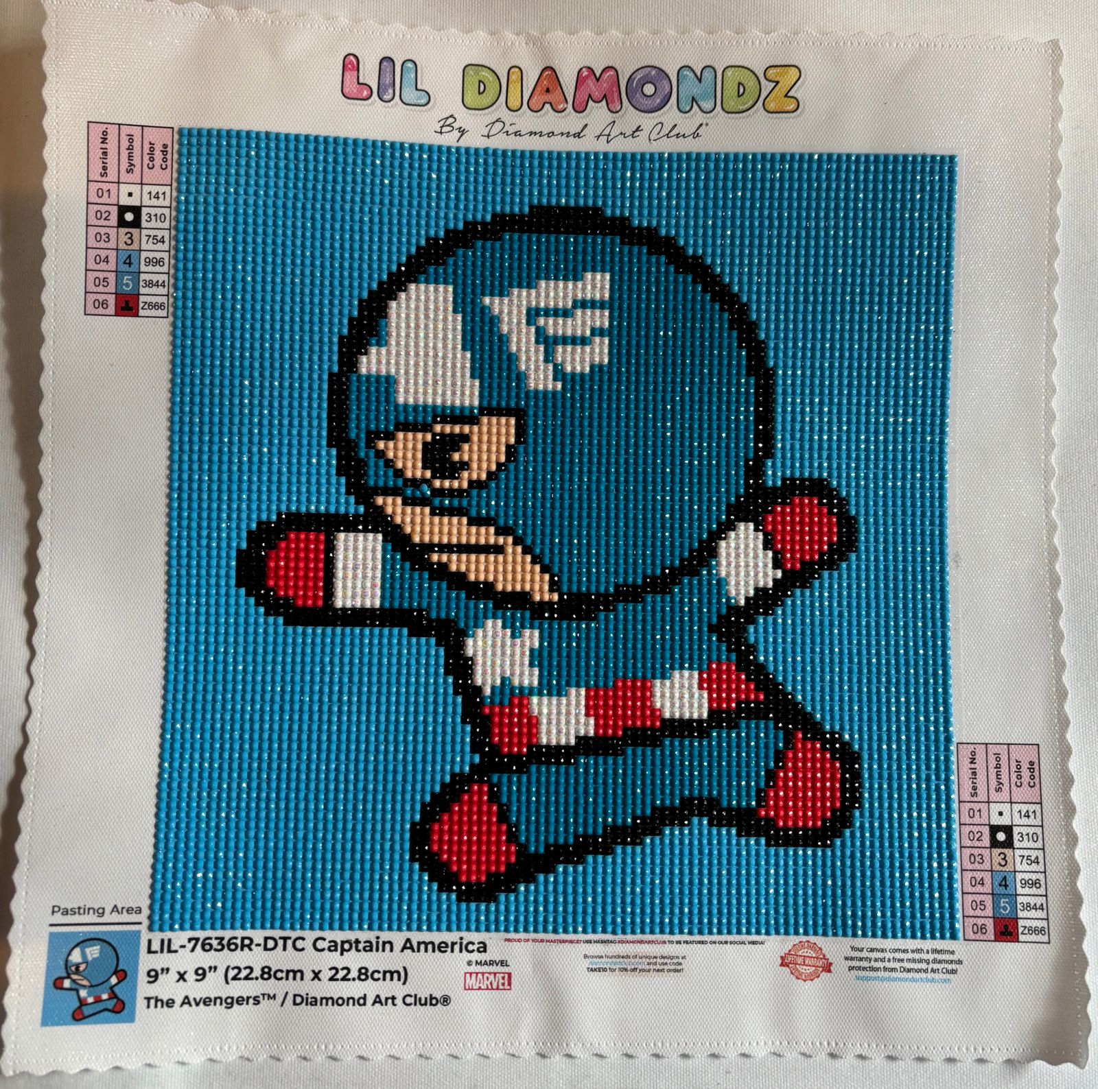 Diamond Painting Captain America 9" x 9" (22.8cm x 22.8cm) / Round with 6 Colors including 1 AB and 1 Fairy Dust Diamond / 6,889