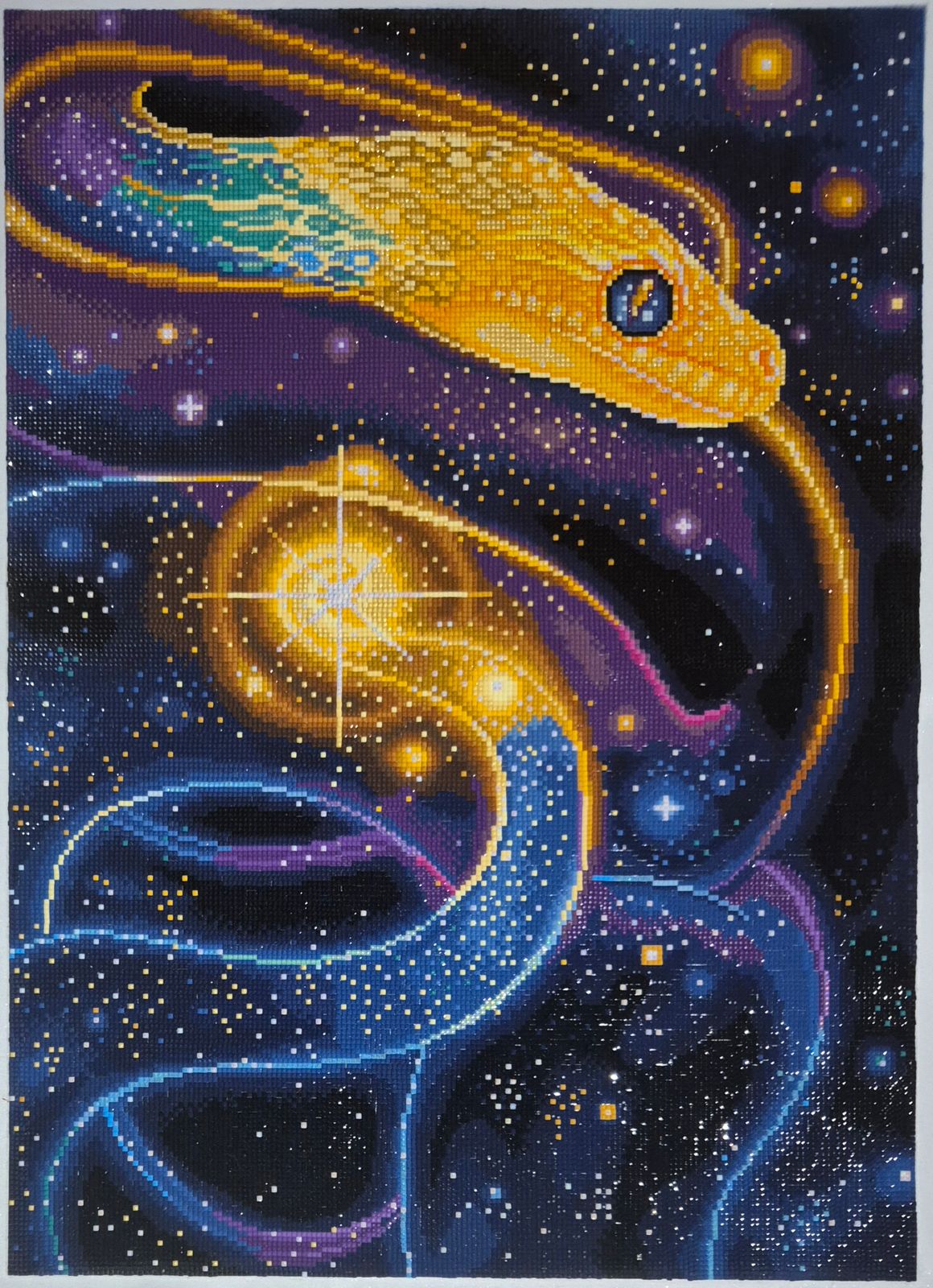 I did this for year of the snake and I'm a big fan of Ravynne Phelan, I really love her art style, especially with her cosmic pieces. I got this before the new boxes & trading cards so there was a handful of trash drills in the black & navy colors. Either I love the outcome 🥰