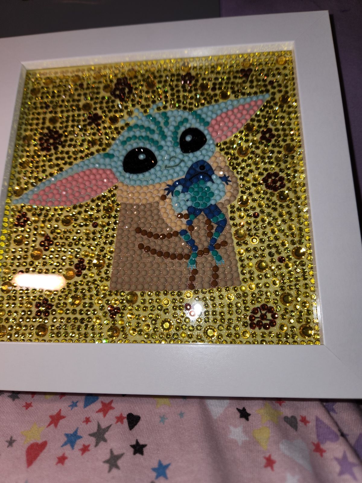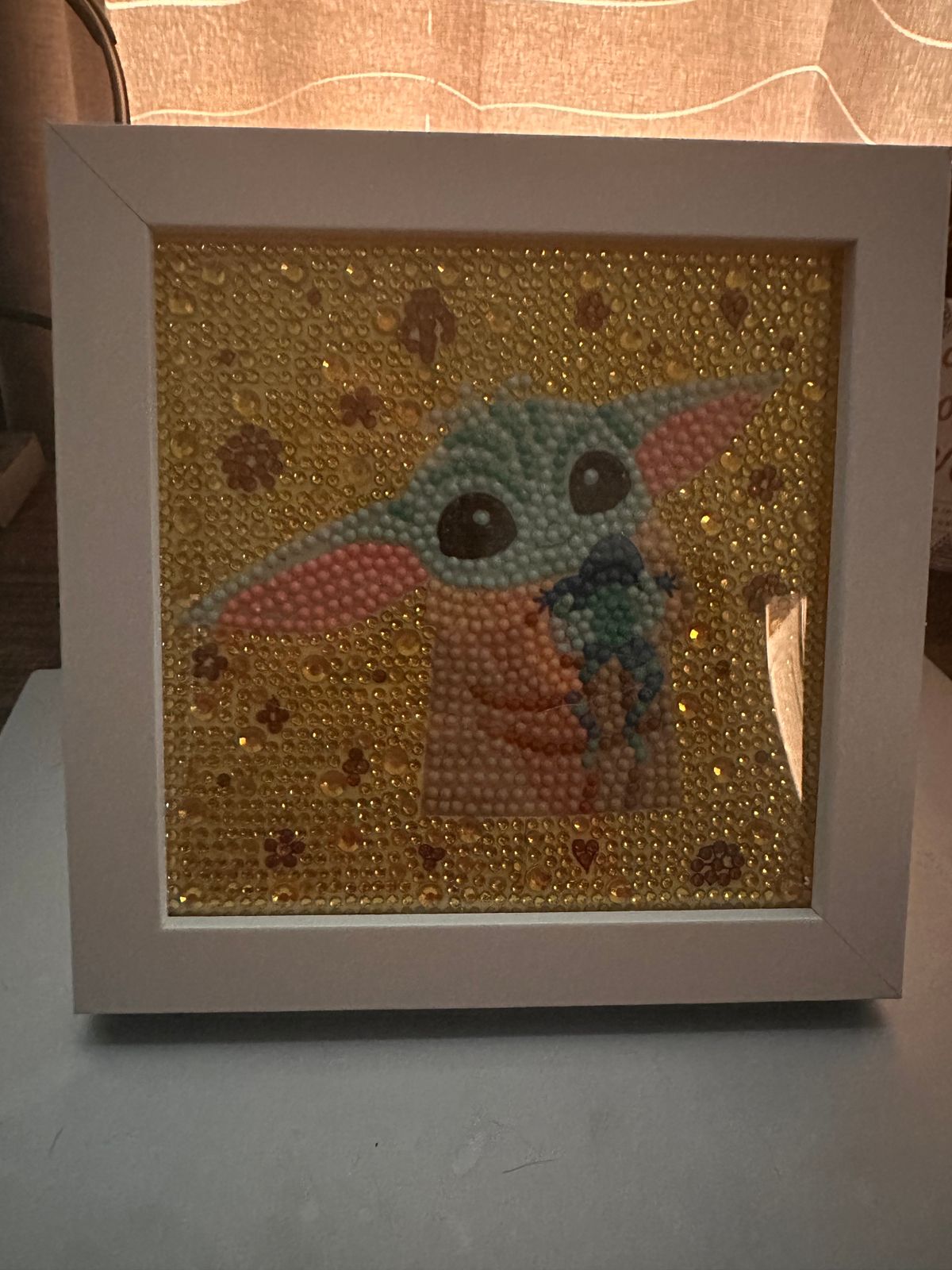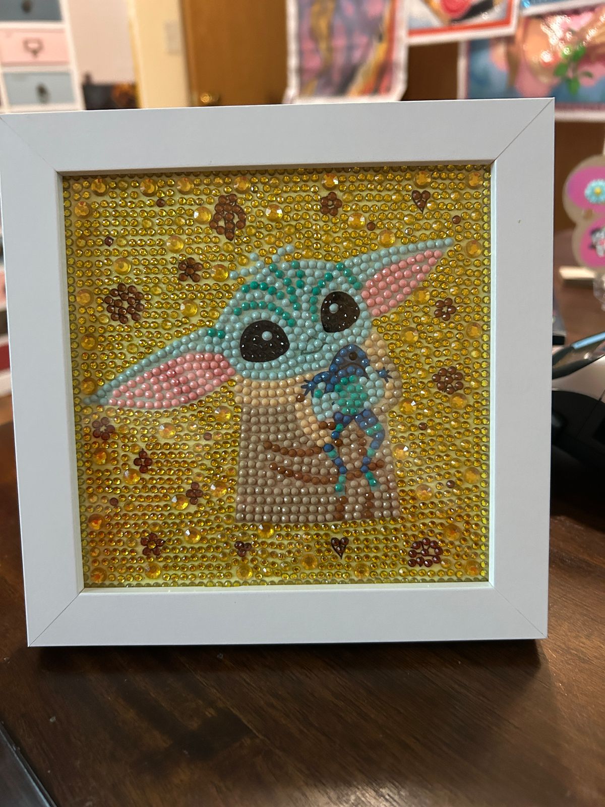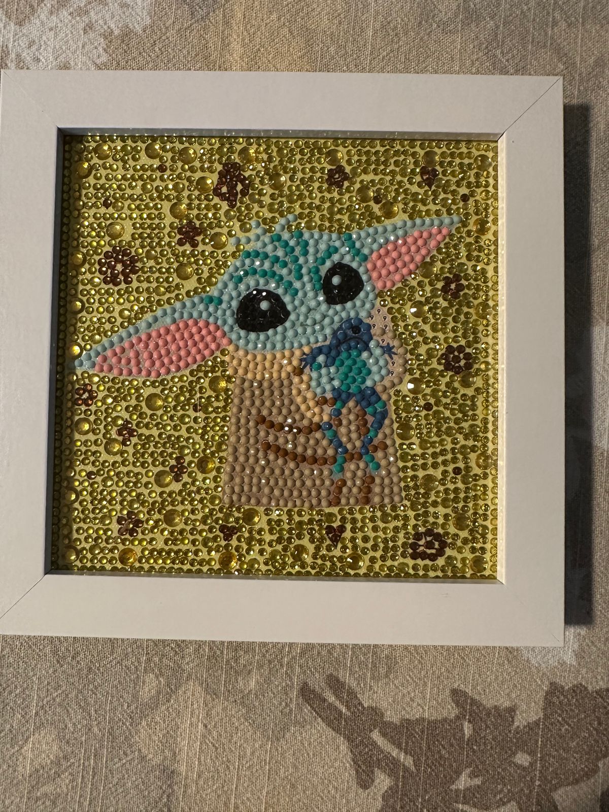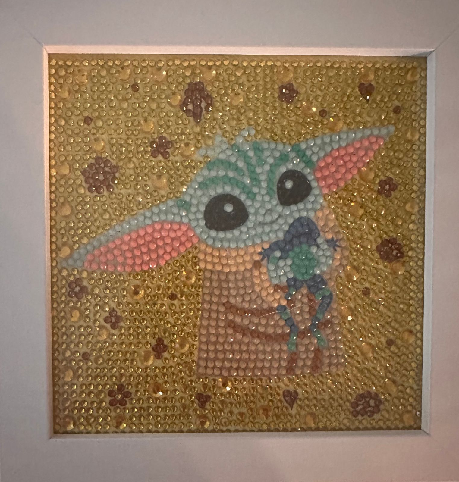 Baby yoda aka Grogu , is my fave he is so cute i really enjoyed making this one and loved that it came with the frame so i could put it on display right away 💗 😊!!!!!