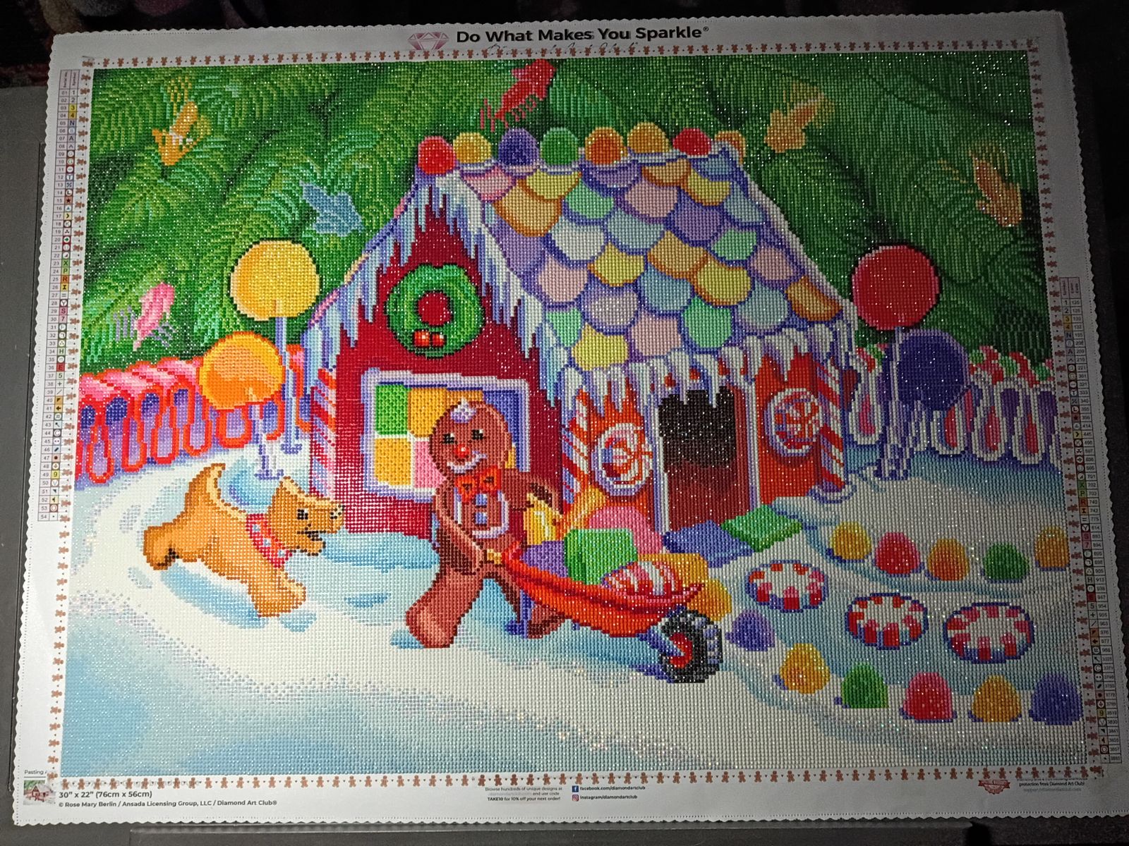 This is my first diamond painting, n I couldn’t picked a better one.. it is so pretty n colorful.. n I love decorating with gingerbread houses❤️❤️