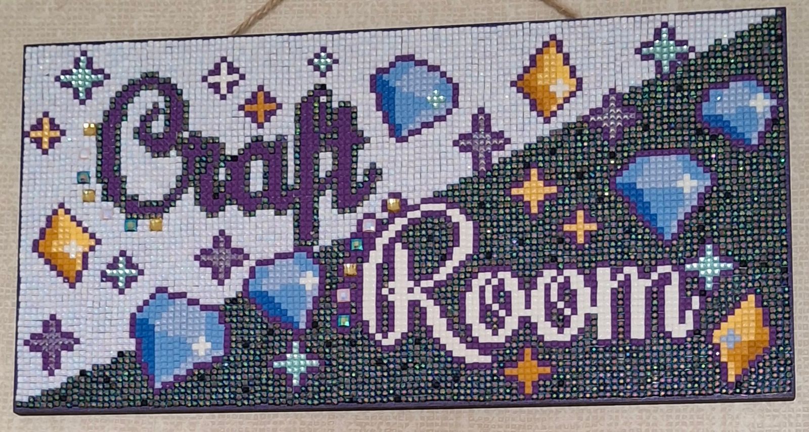 This crafty sign is having up in my craft/Lego room where I love diamond painting and my husband loves Legos. Our hobbies are expensive but I sure love sitting and placing diamonds and losing time. This little sign made my crafting room legit!
