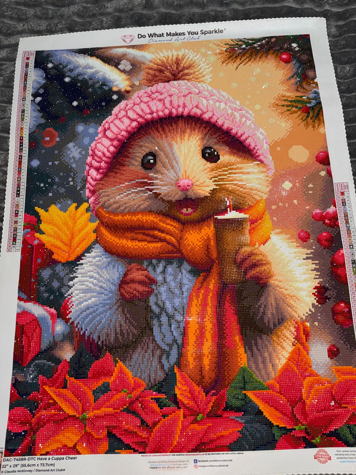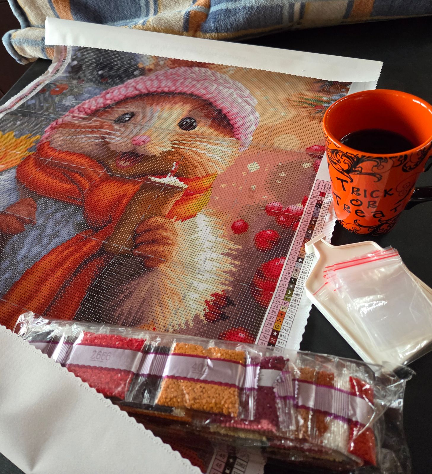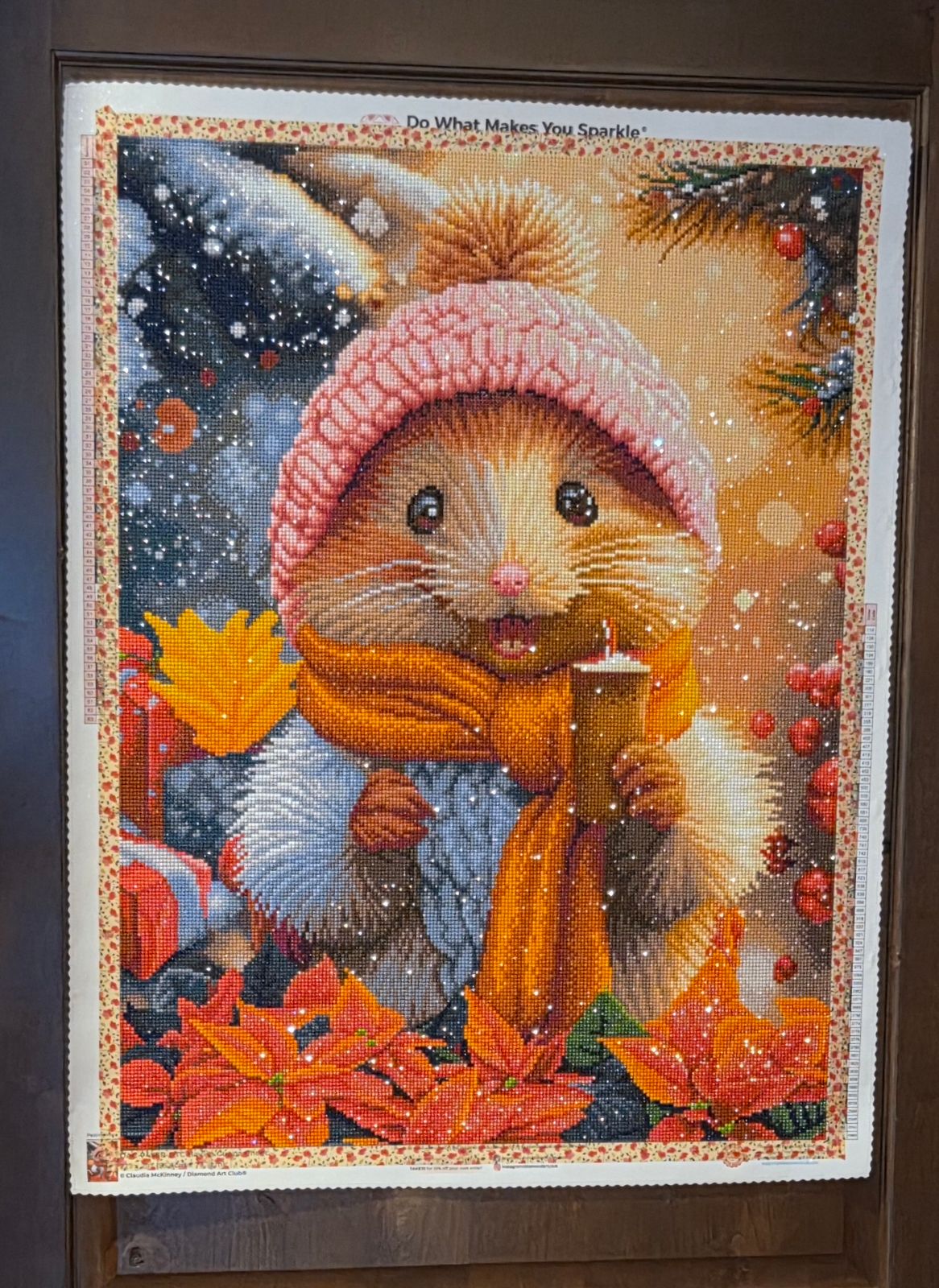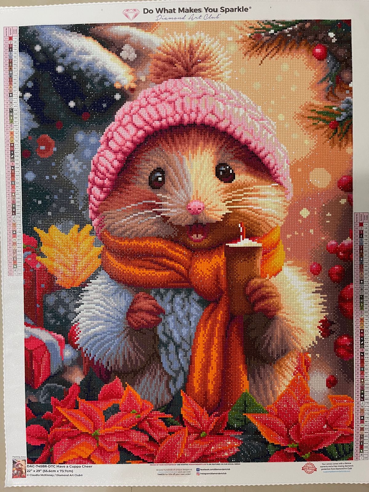 I'm doing this for a event for Jingle Drills 2025. OMGEE! This is just too cute. Beautifully rendered and going to be so much fun to work on. The colors are beautiful. 2 ABs & 4 Fairy Dust Diamonds. Diamond Art Club never disappoints their rendering team is Absolutely Amazing. Look at this face. She brings a Smile to my face.
