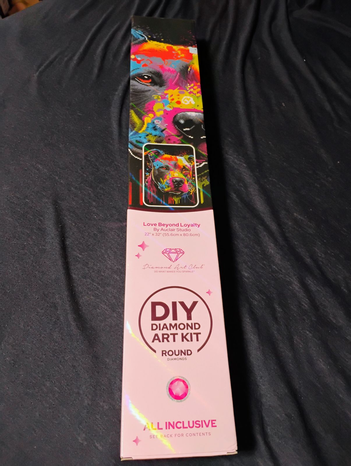 The first thing I noticed was the fantastic quality of the drills. What a difference from the previous kits I had worked on. The next thing I noticed was the stunning sparkle that these drills gave this piece. I gifted this to my sister for Christmas and she was over the moon, pitties are her favorite. Photos just do not do it justice. This piece also taught me that I do not like color blocking.
