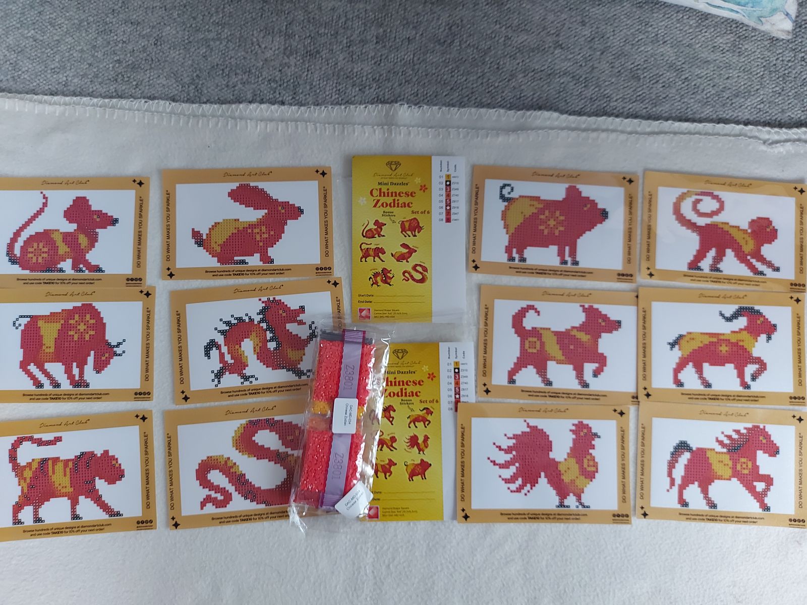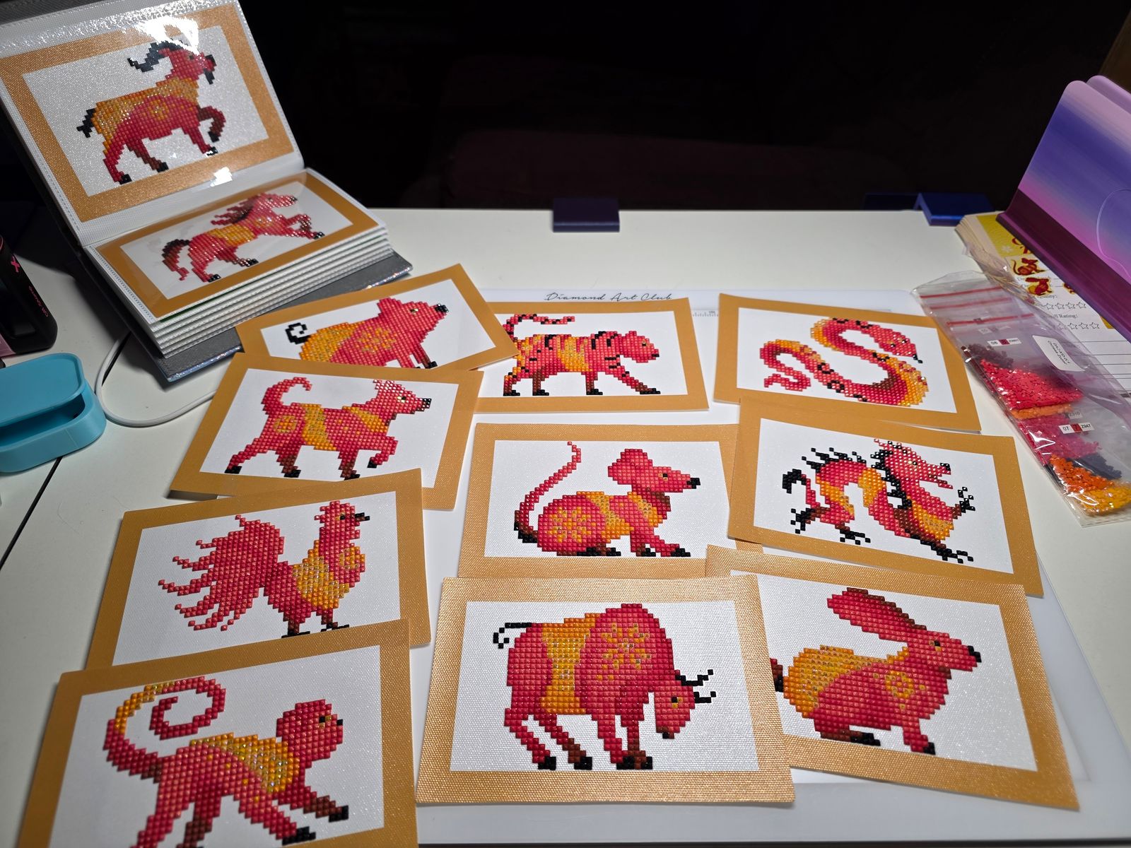 This is the first DAC kit I've started (not the first I've purchased though), and I've very impressed. Everything feels like such good quality, and I'm really enjoying myself. Each piece in this kit is a perfect bite sied snack - there's only 8 colours altogether, which makes it a perfect beginner's set (though I'd completed several other diamond art canvases before starting this one.) Plus, it's nice to see the Chinese Zodiac instead of just the Western one. Very much in love!