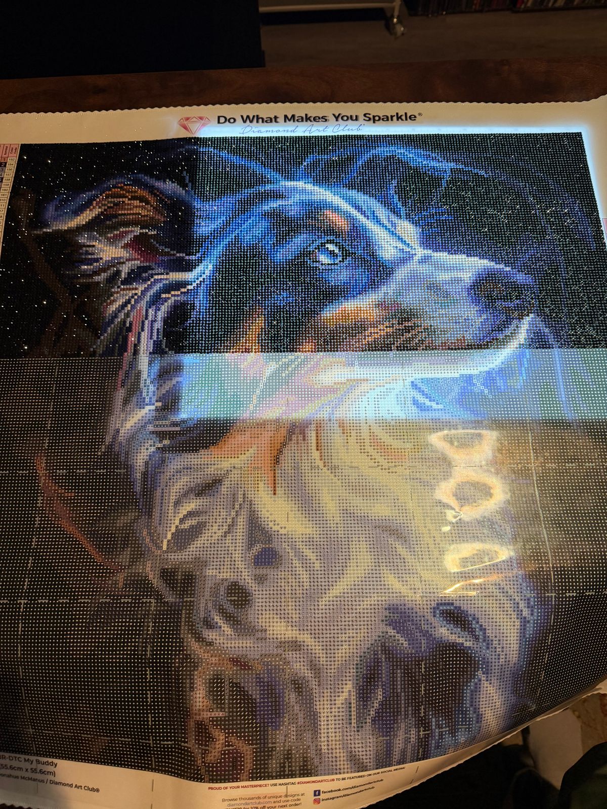 This is such a pretty diamond painting I just had to get it. I've enjoyed completing it. I'm gifting it to a friend who has a Miniature Australian Shepherd that looks a lot like this.