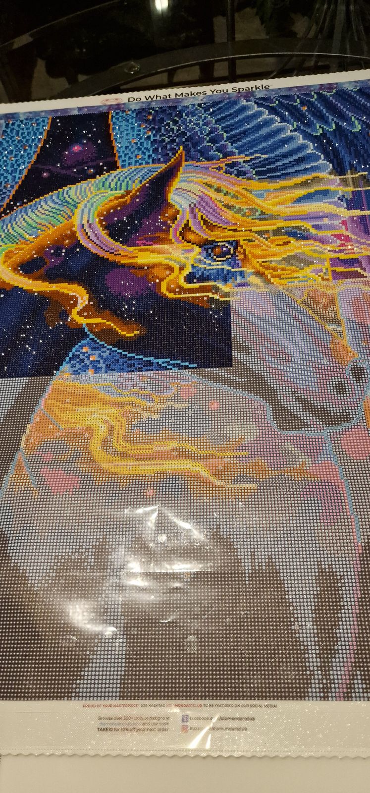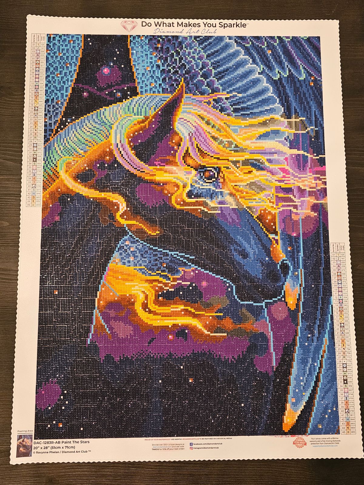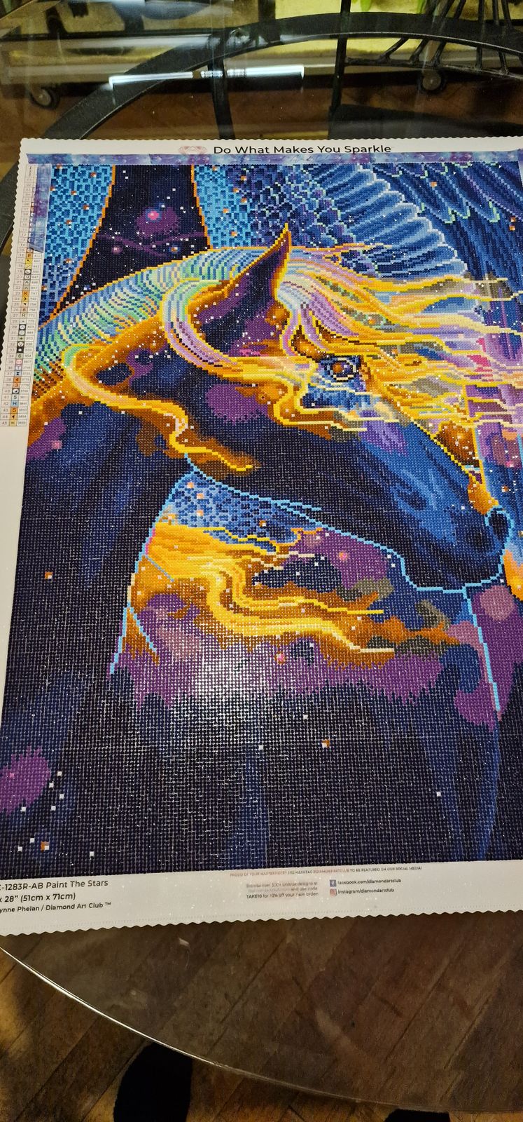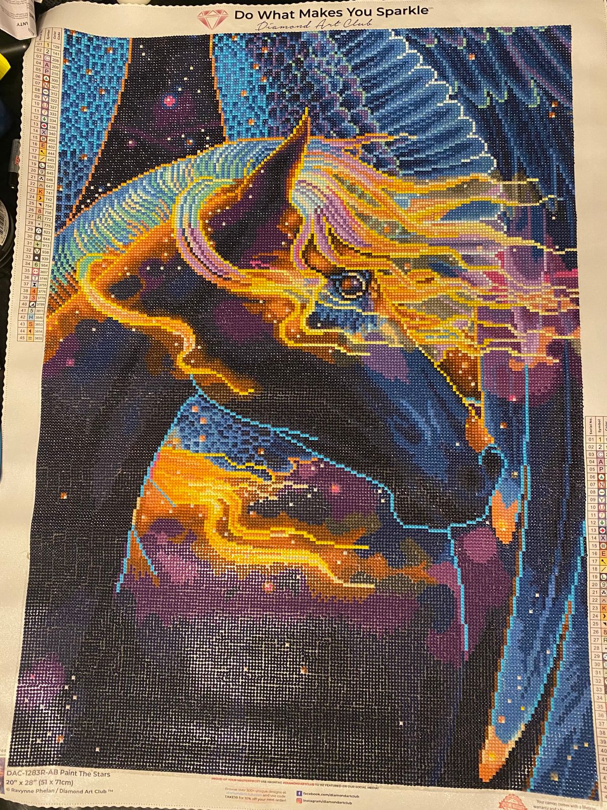 This was such a fun diamond art. The colors are so vibrant and all the sparkle is reminiscent of stars 🤩 Good mix of color blocking and confetti that tested my patience a bit. But the result is absolutely worth the effort.