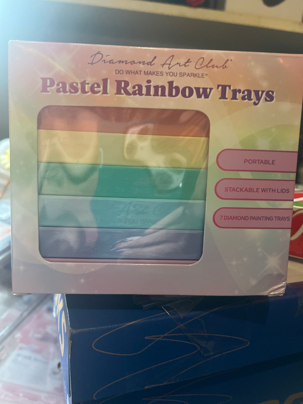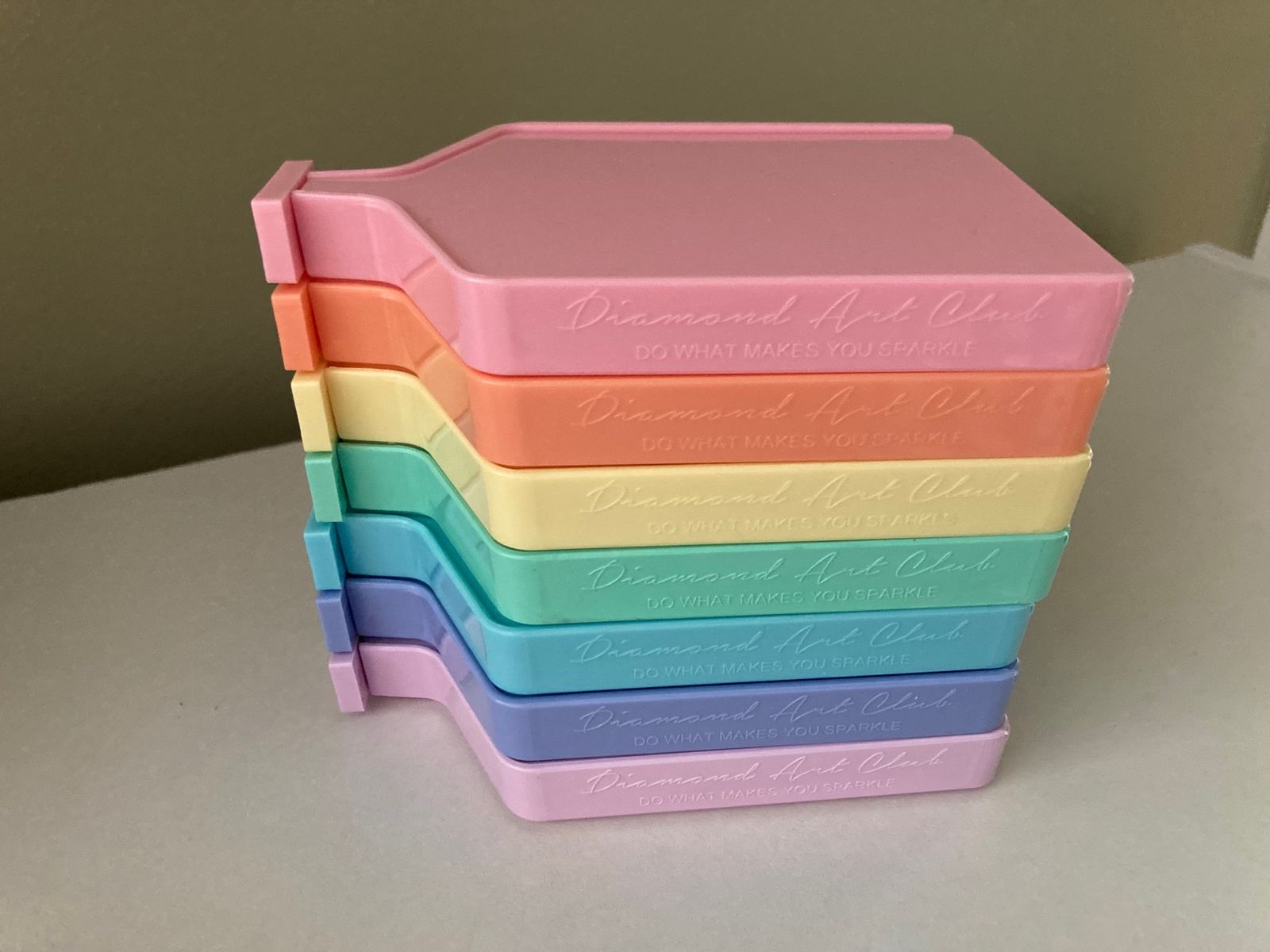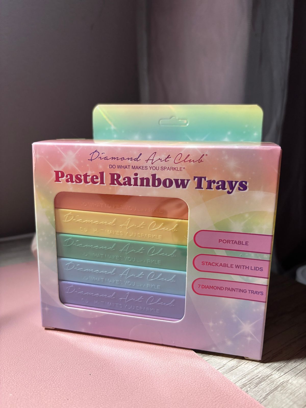 Organize your diamond painting sessions with our Pastel Rainbow Trays! This set includes seven vibrant, stackable trays with lids and stoppers to keep your workspace neat and your diamonds secure. Designed for convenience and portability, these trays are perfect for crafting at home or on the go.